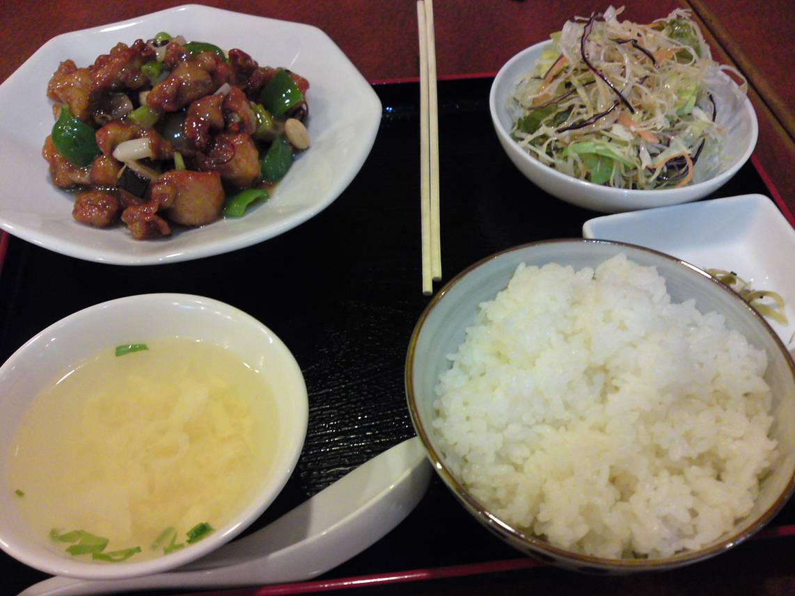 広島市西区楠木町1-11-17 082-293-2722 今日は暑くはないのだけど雨でうっとうしい。 こういったときだけ中華料理が欲しくなる。 そこでこちらのお店へ。 相変わらず元気な感じで中国語が飛び交う。 今日は麻婆豆腐? から揚げ? だと思ったらこれ。 宮爆鶏丁定食680円。 今日の日替わり。 これは見たことないなぁ・・・。 小さく切った鶏肉にピーナッツ、野菜をたっぷり、それを醤油ベースの甘くない餡で味付けしている。 見た目は酢豚だがそんな甘くも酸味もない。 しっかりした味付け。 ご飯がパクパク進みます。 鶏は香ばしさが残ってるしいいですね。 これは美味しいおかずでした。 ちなみにご飯は少し減らしてもらった。 これでも意外と多かった。 いい店ですねぇ。 しみじみ。 ご馳走様でした!