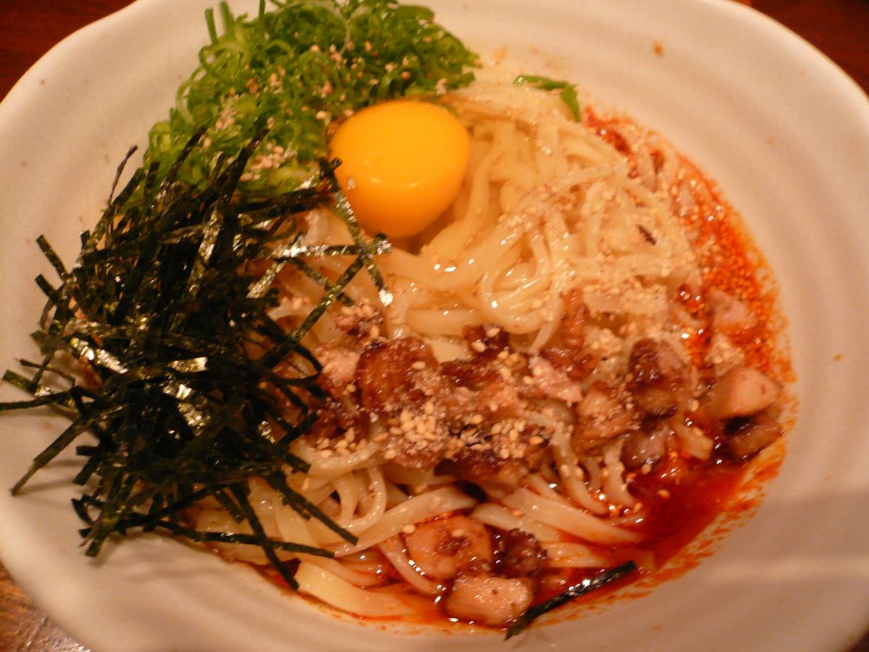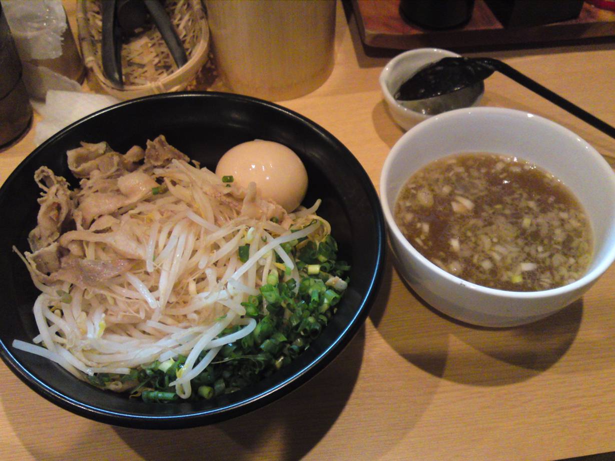 広島市安佐南区川内5-21-44 082-870-0638 今日は久々にラーメン連ちゃんをしたくなってこのお店へ。 旨いお店ですが、最近広島つけ麺ばかり食べてたのでちょっと違うものを。 なんて思ったのですが新しいメニューがあったのでこちらへ。 まぜそばセット700円。 単品だと650円。 ご飯がつく。 まぜそばは辛味の効いたタレで食べる。 チャーシューは味のしっかりついたチャーシューがゴロゴロ。 そして生卵が乗ってる。 食べると冷たい麺に太い平べったい麺が絡んで面白い。 辛さも結構ありピリッとした感じとつるつる感がいいねぇ。 出汁は魚介の味が少しするけどよくわからないなぁ(苦笑)。 油分もないしそこはいいですね♪ でもなんとなく単調かな? 卵のおかげでまとまってしまうからかな。 ご飯を最後にかけると冷たいクッパみたい。 なんだか面白いなぁ。 ピリ辛の味も面白いし今後少し変わるのかな? でも塩ラーメン食べてないなぁ。 食べなくては。 ご馳走様でした!