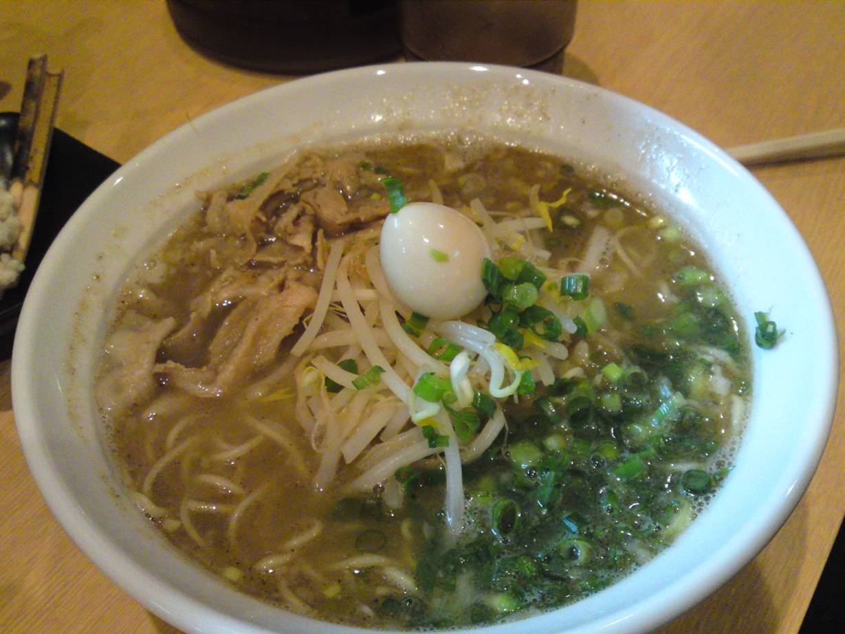 広島市安佐北区深川5-40-8 082-842-2235 今日は噂に聞いてたお店へ行ってみました。 意外と家から近いし、いいかな? なんて思って行ってみたけど、遠かった(苦笑)。 疲れ果ててお店へ。 元気な感じのお店だなぁ。 出来て間がないらしいので店が綺麗なのは当然だけど元気さは大事。 でも、食べるまでは相当から回ってた(笑)。 これって・・・? って思う感じだったなぁ。 正直まだ行くのは早かったかな? って思う感じでした。 ラーメン(サンマ塩)750円。 塩の味は秋刀魚が入っているからか旨く感じる。 塩分は少し強いくらいで自分には心地いいなぁ。 ってより濁ったものを舐めると思いっきり秋刀魚。 秋刀魚面白い! って変わった日本語が出るほど秋刀魚の味がする。 旨いなぁ。 こってり感もかなり強いが、これは楽しいラーメンだ。 食べていくうちにトッピングで辛い玉ねぎを入れたら面白く変化した。 ピリッとしたものと玉ねぎの爽やかさが少し気持ちが変わった。 他は入れなかったけどトッピングもたくさんあって楽しいなぁ。 つけ麺(ホタテ醤油)+卵850円。 つけ麺も食べてみる。 麺はほぐす水分をいただくけどかなりほぐれない。 麺自身太くはない、平たいめんです。 食べるとぷりぷりですけど少し柔らかめで面白い。 ホタテもかなりのホタテっぷりでした。 つけ麺の方が濃いのかな? って感じたけどきっと変えてても微妙かな? 野菜もモヤシがたっぷりだしお腹がいっぱいになりました。 次はエビで食べたいな。 自分としてはつけ麺よりラーメンだけどね。 あとは落ち着いてほしいなぁ。 ご馳走様でした!