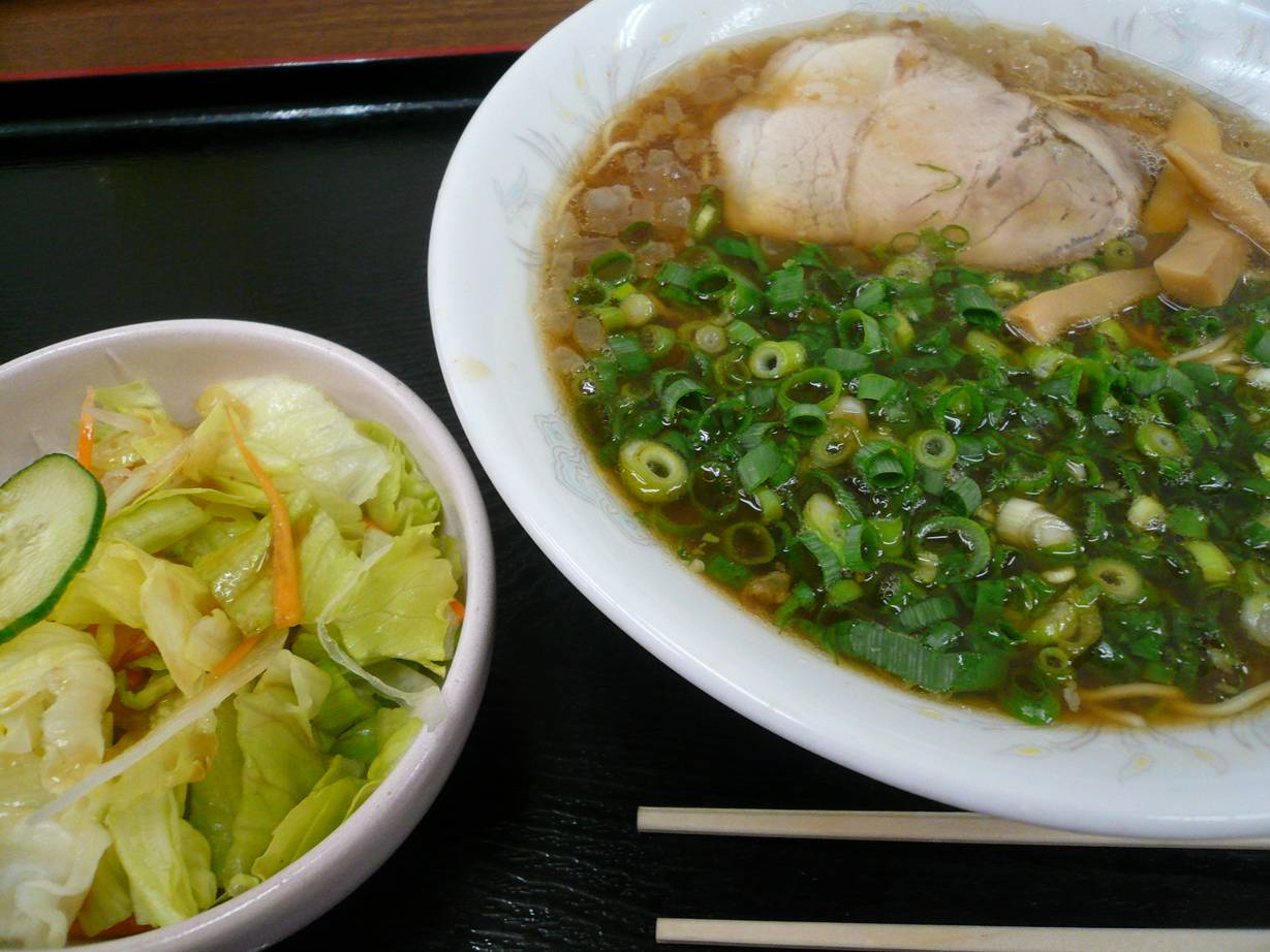安芸郡海田町栄町3-20 082-824-5635 今日は海田でお仕事。 ってことで海田での食事の場所を探してると偶然見つけたお店。 そう言えばなんとなく聞いたことがある名前だなぁ、って思ったらお土産屋さんにありますよね。 尾道ラーメンの有名店として。 どんな感じかな? ラーメン600円+サラダ100円 サラダがあるのが嬉しいなぁ。 特に特徴のない野菜だけのサラダだけど野菜なんてなかなかないもんね。 ラーメンは意外と香りも甘さも香りも強くない尾道ラーメン。 そこはまだいいのだけど、やはり脂甘さは苦手。 ううむ、何故わしは尾道ラーメンを選ぶのだろう・・・。 次は冷麺を食べてみたいな。 ってことで熱い時期だね。 ご馳走様でした。