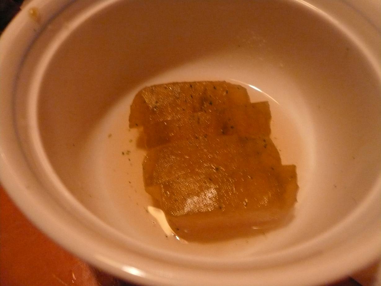 広島市西区三篠町3-7-10 082-509-1298 今日はいつもの、そういつものお店で呑んでます。 来週にちょっと重要なこともあるのでその打ち合わせの気持ちと刺身が無性に食べたい気持ちとで。 お刺身、強烈に好きとは言えないのですがたまに食べたくなるんですよねぇ。 今回も羅列ですみませんが、ご紹介ご紹介。 冬瓜の冷製。 冷静に食べれる冷製(ダジャレ)。 さっぱりしてすっとした感じの冬瓜。 ゆずが効いてて香りも満足です。 冬瓜ってユウガオのこと? って聞かれた。 ユウガオって何だろう? 鯛のお頭(塩焼き)。 ほほやヒレの部分も旨いですね。 塩焼きってやっぱり魚が旨いと旨いね。 パリッとした皮も旨い。 止まらない(苦笑)。 鯛の子の煮付け。 ぽそぽそしてるけど癖になる。 なんでだろう? 香りがいいからかな? 旨い旨い。 鯛の煮付け。 またお頭。 お頭シリーズですが甘く煮るとこれは癖なる。 ご飯が欲しくなるねぇ。 ・・・日本酒で食べてます(笑)。 刺身盛り。 いろんな魚をいただきました。 また砂肝美味し。 サバも旨し。 あははははは~っ。 最後はモツ鍋(味噌味)。 モツがプルプルで野菜がたっぷり。 意外とこってりスープ。 〆としては少し重かったけど旨い。 やっぱり楽しい時間でした。 ありがとうございます。 そして。 ご馳走様でした!!