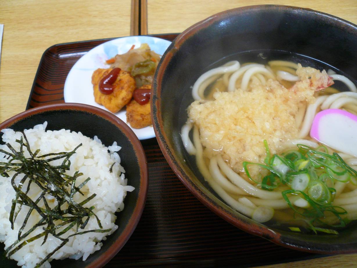 広島市西区横川町3丁目4-13 082-296-6090 今日はさらっとランチでこちらへ。 時間がないときにさらっと食べれる。 こういったこともランチでは大事だからね。 そして胃にも優しそうだし・・・。 天ぷらうどんセット500円。 懐にも優しい値段(笑)。 うどんはとても柔らかく腰で食べるより汁と一緒にさらりと食べるタイプ。 讃岐うどん好きには苦手かもね。 天ぷらは海老天が。 でもやはり汁に衣が溶けてしまう。 難しいね、汁物の天ぷらって。 美味しいけど無くなっちゃうと寂しい。 つけ添えのささみのナゲットみたいなのはちょっとかな? でもボリュームは増えてありがたい! やはり予定通りの食事ができて満足でした。 次はどんなん食べようかな? ご馳走様でした。