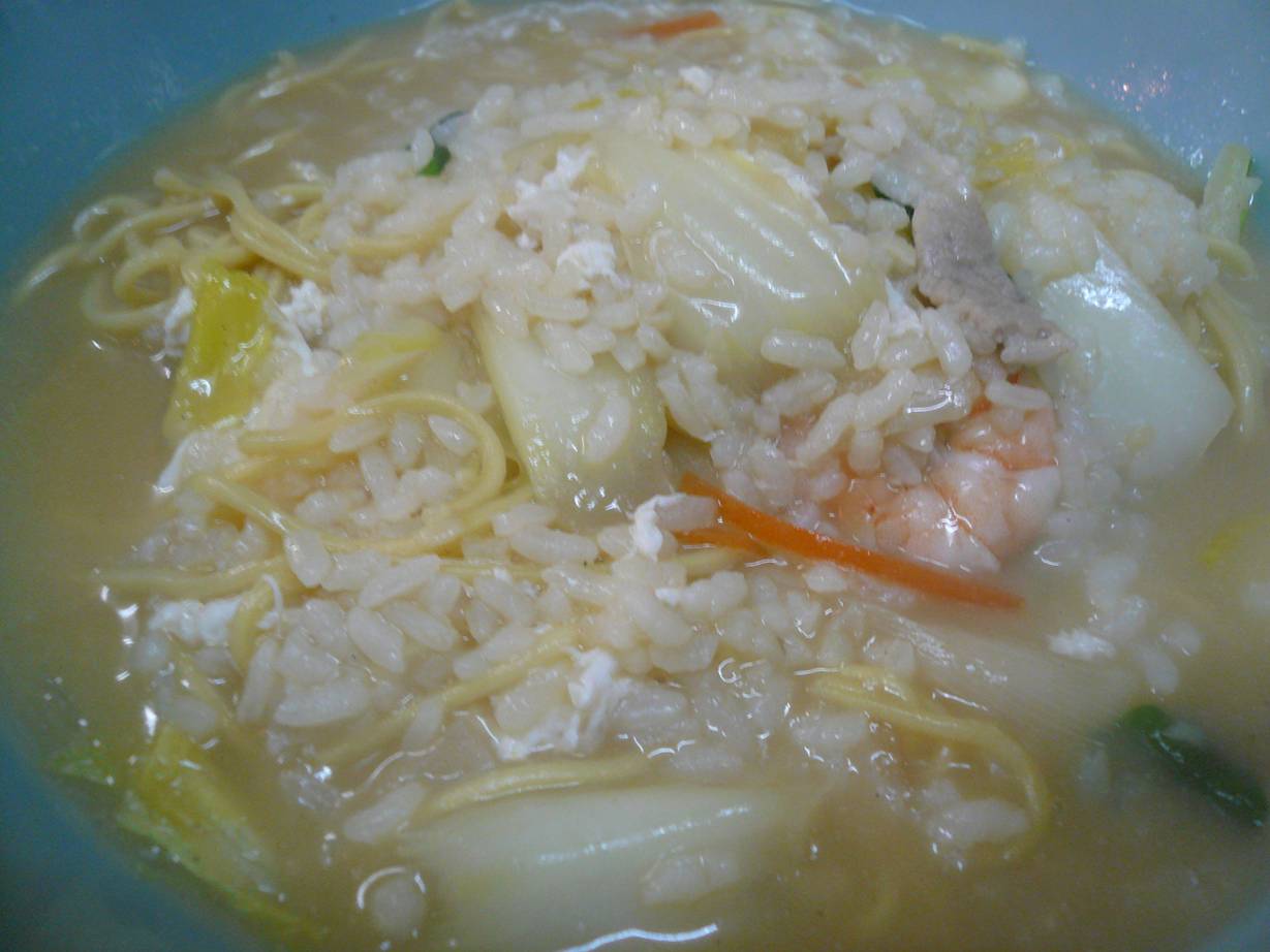 広島市西区三篠町1-7-12 082-238-2058 今日は非常に寒い。 ってことで暖かく安いものがいいなぁ、って思って探すと見つけた久々のお店。 ちょっと気になったメニューが黒板に書いてあったのでチャレンジ。 どんなんやろう? ぞうすいそば550円。 普段は確か700円くらいではなかったかな? それがこの値段のになってるのが嬉しいし、何より暖まりそうだ。 見た目は予想通りのチャンポン麺に御飯が入ってる。 とろっとしたスープが雑炊風の米でさらに旨そうになってる。 スープは米の甘さが入って旨い。 野菜もたっぷり入ってるし半熟卵がトロリとしてるし面白いなぁ。 エビや白菜がたっぷりって冬の幸せかな? 食べた後でぽかぽかしたのが一番だが、いい感じだったよ。 次はまた定食かな? ご馳走様でした!
