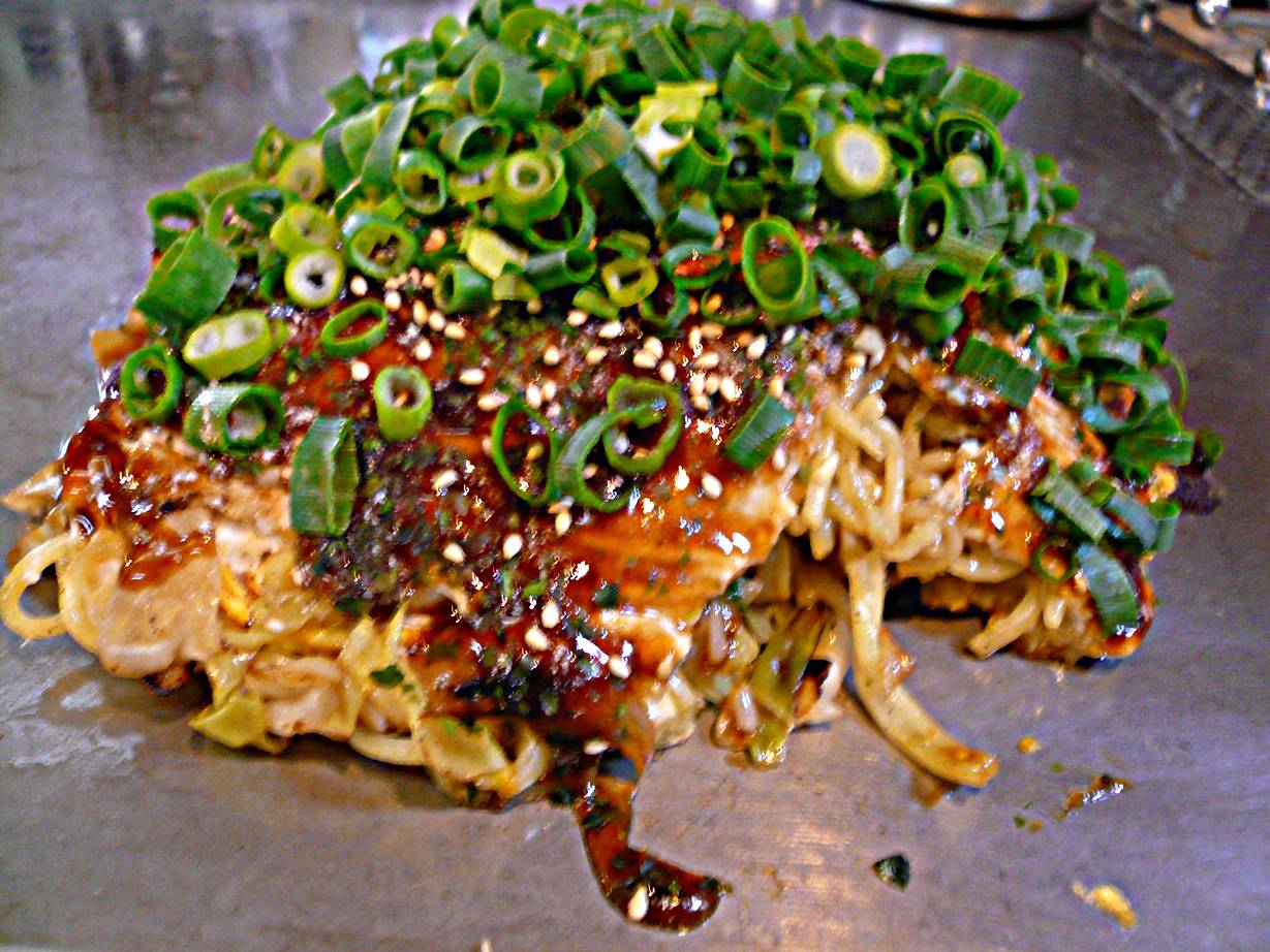 広島市安佐南区祇園6丁目10-26 082-846-0229 今日は非常に体調が悪い。 目が回る。 ぐるぐるぐる・・・。 ってことで薬を飲まなくてはいけないので食べないといけないので、うどんかお好み焼きにしようと思い捜索。 前から行きたかったこのお店へ。 学生のさんがとても多い店だけどどんなお好みが食べれるのやら・・・。 肉玉そばネギ700円。 ここは肉玉が500円でいろいろトッピングがある。 自分はソバと(これもトッピング!?)ネギで。 最初の皮が小さいなぁ、なんて思ってたら分厚いキャベツを。 うぉ、ごっついなぁ。 なんて思ってたらしばらくじっとしている。 高さが高い。 大丈夫かなぁ、火が通るのかなぁ? なんて思ってたら驚きの行為を。 ひっくり返してしばらくすると皮を取り除いてキャベツをかき混ぜながら炒めだした。 こんなやり方って、ありなのかな? なんて思ってたらキャベツの上に豚肉を置きまた皮を上に奥。 つまりキャベツが下、肉が間、最後に皮。 へぇ、そうなんだぁ。 なんて思ってたら出来上がり。 食べると、まず何故か牡蠣の風味が。 きっとその前に焼いてた牡蠣の匂いですね(苦笑)。 意外と脂が使われてるようで胃にこたえるなぁ。 あとソバがちょっとぽそっとしてる。 ってより体調が悪いからか、旨く食べれなかった。 次はもう一度体調を戻してから食べなくては。 きっと面白い感じがする店なんだから・・・。 またリベンジするぞ! ご馳走様でした。