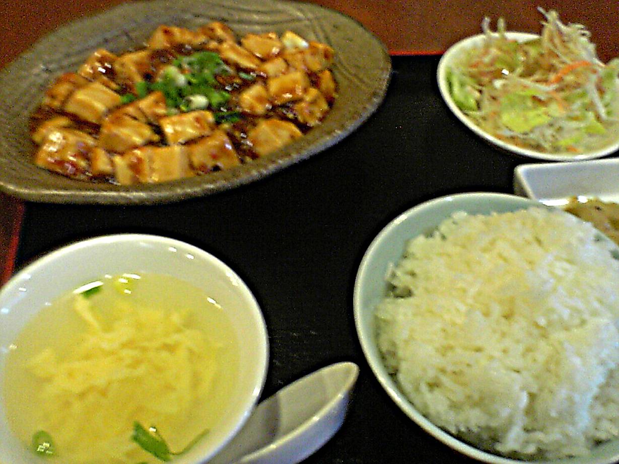 広島市西区楠木町1-11-17 082-293-2722 今日はまたこのお店へ。 何を食べようかなぁ? って日替わりを聞くと。 「麻婆豆腐です」 とのこと。 前も食べたなぁ。 何にしようかな? 麻婆豆腐定食680円。 やっぱりこれにした。 麻婆豆腐好きなんで。 餡が甘辛くなんとなく和風な中華。 やっぱり旨いと思う。 そしてやっぱり食べたあと・・・。 食べすぎたぁ! って思う(笑)。 次こそ違うメニューかな? ご馳走様でした!