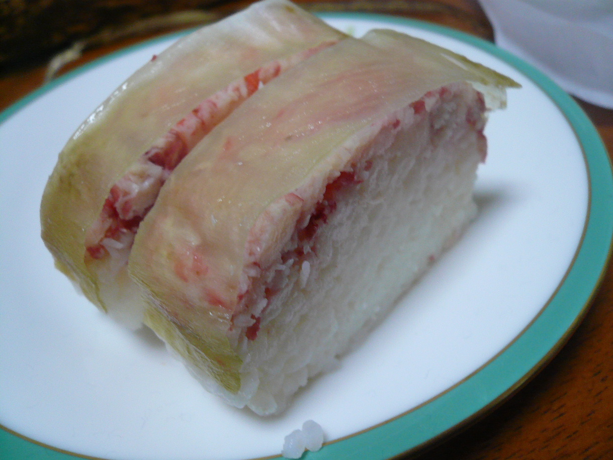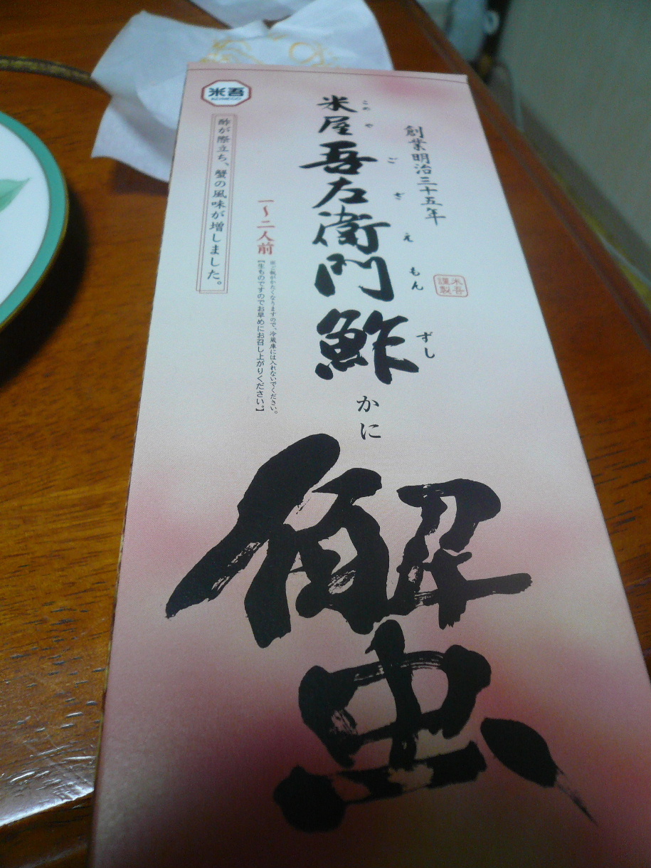 いやぁ、美味しかったなぁ。 米屋吾左衛門鮓 鳥取のお寿司屋さん。 ってよりバッテラ系の押し寿司の店。 有名なのかな? 自分は知らないのが悔しいが。 バッテラを食べたかったけど親が食べてしまったから蟹をいただく。 酢のなじみ方がいいなぁ。 あと昆布の旨さがいいなぁ。 柔らかくてしっとりしてて美味いなぁ。 蟹は意外と普通だけどトータルで旨い。 あ~、幸せ。 はたはた寿司。 聞いたことはあったがなれ寿司系らしい。 頼んだのは永田屋と言うお店の。 ここのを食べると止まらないらしい。 うわっ、ってほど強烈な風味。 青魚の風味、米のなれ方、味のねっとり感。 どれも強烈。 これは酒が呑みたくなるなぁ。 びっくりした。 嗜好品だからたくさんは食べれないけどこれは気になるなら絶対頼むべき。 美味しいですよ。 幸せな年末だ。 ご馳走様でした!!