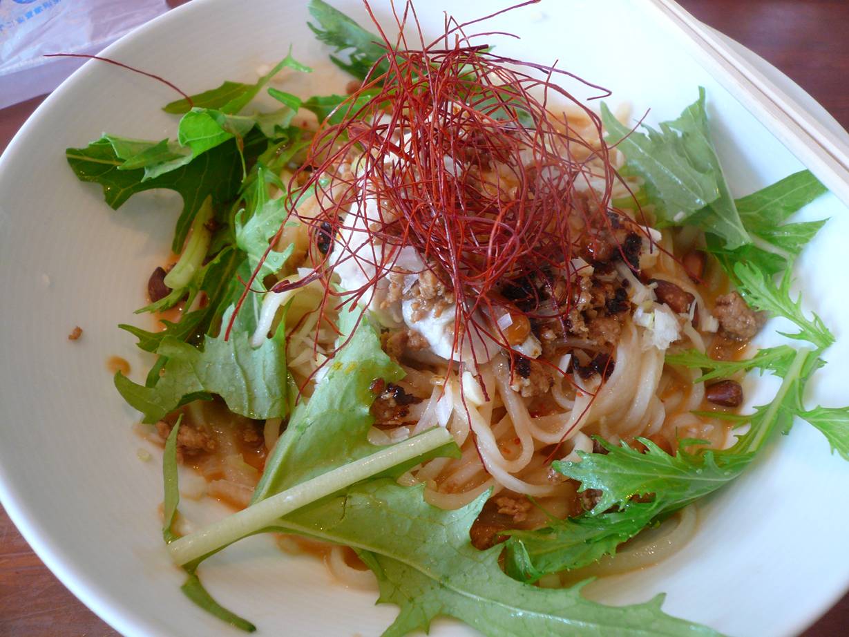 広島市安佐南区祇園4丁目50-5 082-871-5553 今日は坦々麺の旅(またかよ)。 今回は久々に来たこのお店。 場所は移転してから自分は来たのですがよかったんでしょうね。 凄いお客さんの量ですね。 人気店の代表格ですか。 活気があるのもいいですね。 冷やし汁無し坦々麺1,000円。 少し高く感じるが麺を目の前で作り出すのは面白い(カウンターから見える)。 延ばして折って延ばして折って・・・。 これを繰り返す。 凄いなぁ。 出来上がったのはこれ。 麺はぷりぷり系で旨い。 ゴマだれの甘さも面白いしバランス系でいいなぁ。 でも甘さが苦手な人でも唐辛子の辛さも含まれてるのでこれは大丈夫でしょう。 ピリ辛甘い。 うははっ、こういったものもあるのね。 次は面白い料理よりもランチを食べたいなぁ。 美味しかったし。 ご馳走様でした!