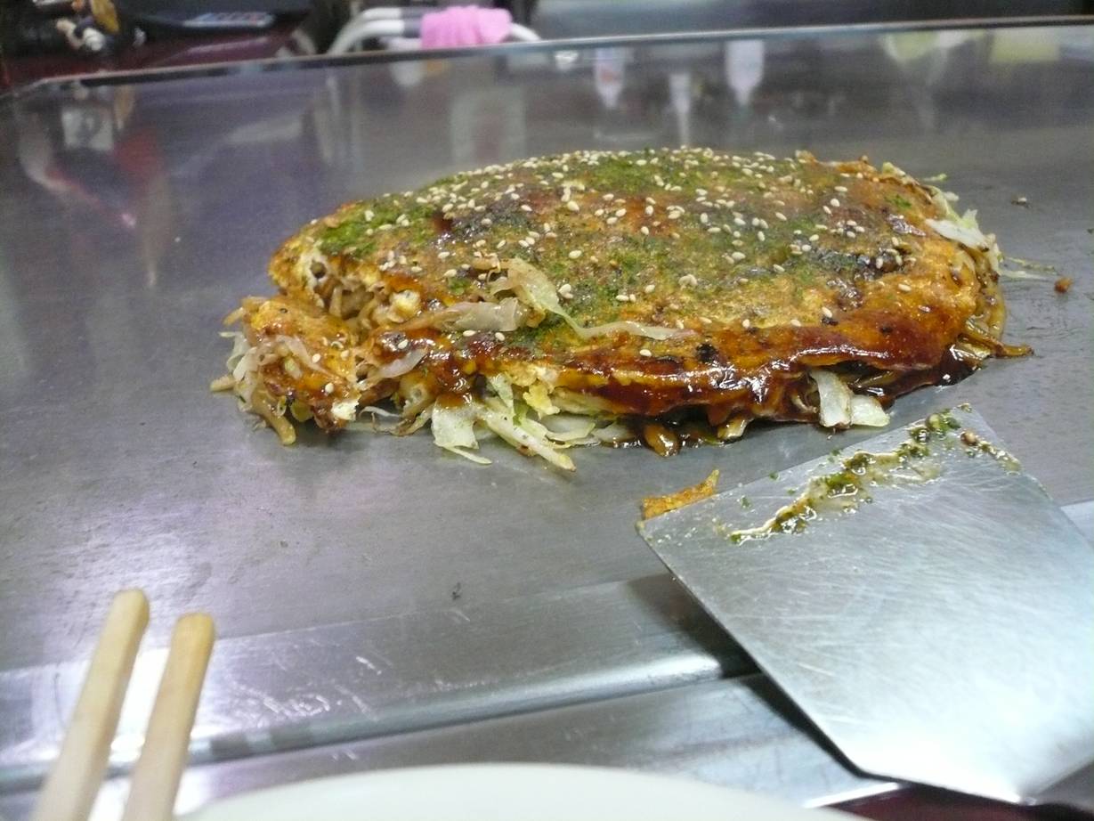 広島市東区戸坂出江2-8辺り 今日はちょっと気になってた鉄板焼き屋さん。 味噌味を前面に出した看板があったので以前から気になってたんですよねぇ。 入るとご主人さんが一人でやられているカウンター4席くらいと座敷が2~3組くらいかな? そんなに大きくはないお店。 鉄板焼きというか焼き肉のようなメニューとお好み焼きがある。 でもやはり味噌味のお好み焼きを食べてみたいなぁ。 こだぬき焼750円。 袋めんをまず炒めて、皮を焼いてキャベツ、水を抜いたもやし、天かすをかけて作ってた。 かなり炒まった麺にソースを絡めて炒めたあとホルモンを小さく切って赤味噌を絡めたものをお好み焼きに混ぜてできあがり。 食べてみると表面ももしかしたらソースに少し味噌を混ぜてるのかな? 甘みのないソースでも我はそこまで強くない。 意外とバランスを保ってるのが面白い。 具の中のホルモンが強い味でパクパク食べると味噌の香りがプーンとして脂の甘さがあって面白いなぁ。 他にも鉄板焼き屋さんらしいメニューが多く、ビールと合わせて食べたいなぁ(笑)。 次はビールを呑みながら最後は味噌味のお好み焼きで〆かな? ご馳走様でした!