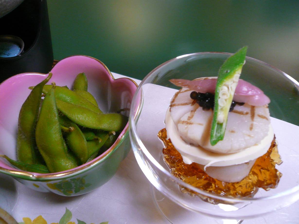 秋田県由利本荘市中町16番地 0184-22-3333 今日はこの旅館でお食事。 歴史は100年を超える歴史ある旅館。 温泉はこの旅館ではなく周りにあるという環境の中、何百年も頑張ってこれたのは素晴らしいと思います。 でも硬い感じはなく愛そうと笑顔で対応してくれる旅館の人たちや古いのに汚い感じがさせないのが嬉しいではないですか! 今回は5,000円(酒抜)のコースでいただきました。 わくわく・・・。 まずは付きだし。 枝豆はノーマルだと思ったらもう一つは軽くあぶったホタテとチーズを酸味のきかせたジュレで食べさせる。 少しおしゃれかなって思ったが意外と食べたら和風の出汁が効いてて変わった取り合わせ。 でもお酒が合うねぇ。 チーズとお酒ってどうかと思ったけどしっかりした下味のおかげかな? お造り。 まぁ驚くものはなかったけどあっさりと食べれて嬉しい。 まぁコースだけにたくさん出てきてもね(居酒屋感覚)。 カニ。 カニ酢でいただく。 黙り込んでしまう味。 そう、黙るカニですな(苦笑)。 うん? これは・・・? 造り? いえいえ、ブリとタコのしゃぶしゃぶでした。 ブリは軽く脂が抜けて臭みもなくなるからしゃぶしゃぶも旨いなぁ。 初めてだけど驚く。 薄く味の付いた出汁で食べても旨いんだね。 ブリって濃い味で煮付けるイメージだったし。 タコは火を加えたら独特の香りが出てきてこれも旨い。 なんだか幸せになる味です。 このしゃぶしゃぶは満足度がなかなか高かったです。 う~ん、幸せ♪ 茶碗蒸し? って思ったら自家製の豆腐のあんかけ。 温かい濃い豆腐が強すぎて驚くほど。 それに餡が軽く感じさせるとは。 驚いた。 ってよりそろそろ出てくる量に驚いた(笑)。 ウナギのサラダ。 まぁ甘く味付けされたウナギが面白い。 ってよりかなり満腹感が強い。 そこに甘さだもん。 ドレッシングの油だもん。 ちょっと凄い状態(笑)。 えっ・・・、タイのお頭が!? ビックリ!! それもわかりにくいですが立派なんです、この鯛の顔が。 食べても食べても出てくる身、その濃縮された旨さはたまんない。 満腹なのに食べれる。 でも満腹。 この繰り返し(笑)。 でもうめぇ~♪ 天ぷら。 この辺で覚悟は決めてたが・・・。 さすがに残そうかと思った(苦笑)。 でも美味しく頂きました。 えっっと~、何の天ぷらでしたっけ(笑)? 海老しんじょの椀。 エビの香りが強いです。 ってよりほっとします。 吸い物の味と、これできっとシメだろうと思う心が(笑)。 ・・・にゅうめん? まだ続きますか? まぁ軽く具が入ってるだけで柔らかいにゅうめんなので胃に落ち着きますが。 もう、眠気すら出てきました。 凄いなぁ。 最後はゼリーで。 まぁこれはお愛敬。 面白いねぇ。 ってよりこの旅館。 凄いよ! ってしか言えません。 ありがとうございました。 ご馳走様でした!!