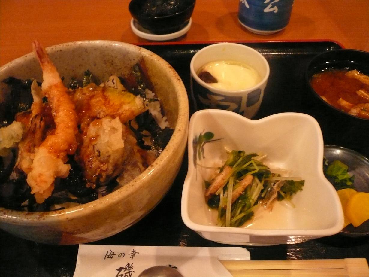 広島市西区横川町2-10-7 082-233-3678 今日はもうできて少したった和食居酒屋さんでランチ。 中に入ってみるととても広く奥に奥にとスペースがある。 面白い造りだし、いけすもあるのは面白い。 とても人気店みたいで合席で座らせてもらえた。 とりあえず定食もいいのですが丼物で。 天丼700円。 天ぷらはエビ、イワシ、ナス、南瓜。 天ぷらは少し揚げ置きかな?って風味がする天ぷら。 これもまぁこれだけ人気なら仕方ないかな。 でも少し重く感じる。 ただ丼もなかなかでかいしたっぷり食べれる。 味噌汁や茶碗蒸し、鉢ものが付いてくるのは嬉しいですね。 もうこれで充分定食ものな気がします(笑)。 次は定食ものをきっちり食べようかな? どんなんが出るかしら? ご馳走様でした。