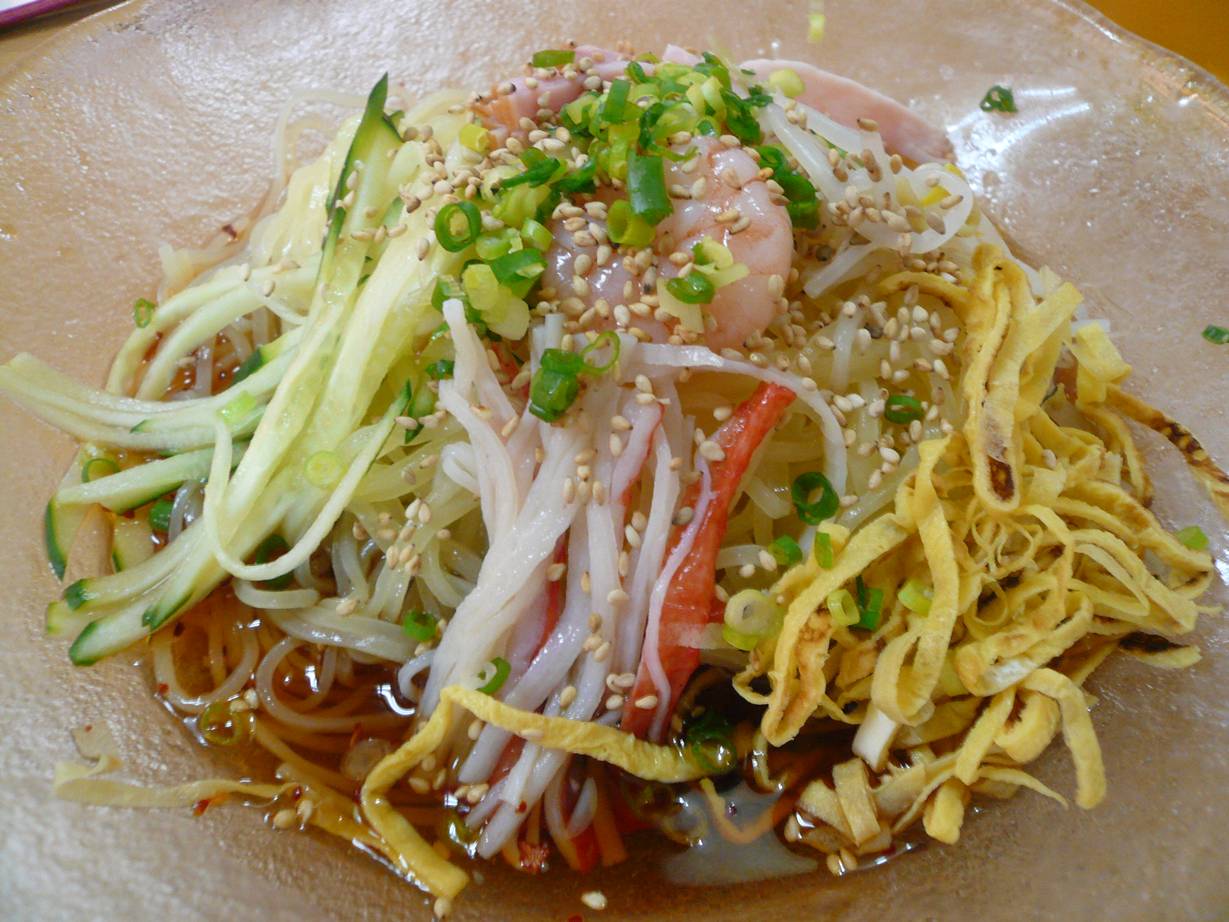 広島市安佐南区中筋2丁目15-3 082-873-4346 今日は中筋小学校のすぐそばにある中華料理屋さんへ。 以前から八木にあるお店が気になってたのですが何故かいつも行けば休んでたのでこちらへ。 中華料理屋、ってより庶民的な定食屋さんの雰囲気。 どうせなら涼しいメニューと冷やし中華を見るとキムチをつけたり辛味を増したりできるらしい。 どんなんだろう? 冷やし中華辛味増し730円。 辛味を増すと50円増しになります。 食べてみると酸味も軽く効いてて辛味はほとんどなしかな? とてもノーマルな冷やし中華であっさり食べれます。 途中でちょっと飽きてきたのでラー油をかけてみると辛味がよくあったし、酸味増しもありそう。 でもメニューは定食が多いし、次はそっちかな? 香港の料理も食べてみたいしなぁ。 ご馳走様でした。 ※なぜか写真が見つかりませんでした(涙)。 |