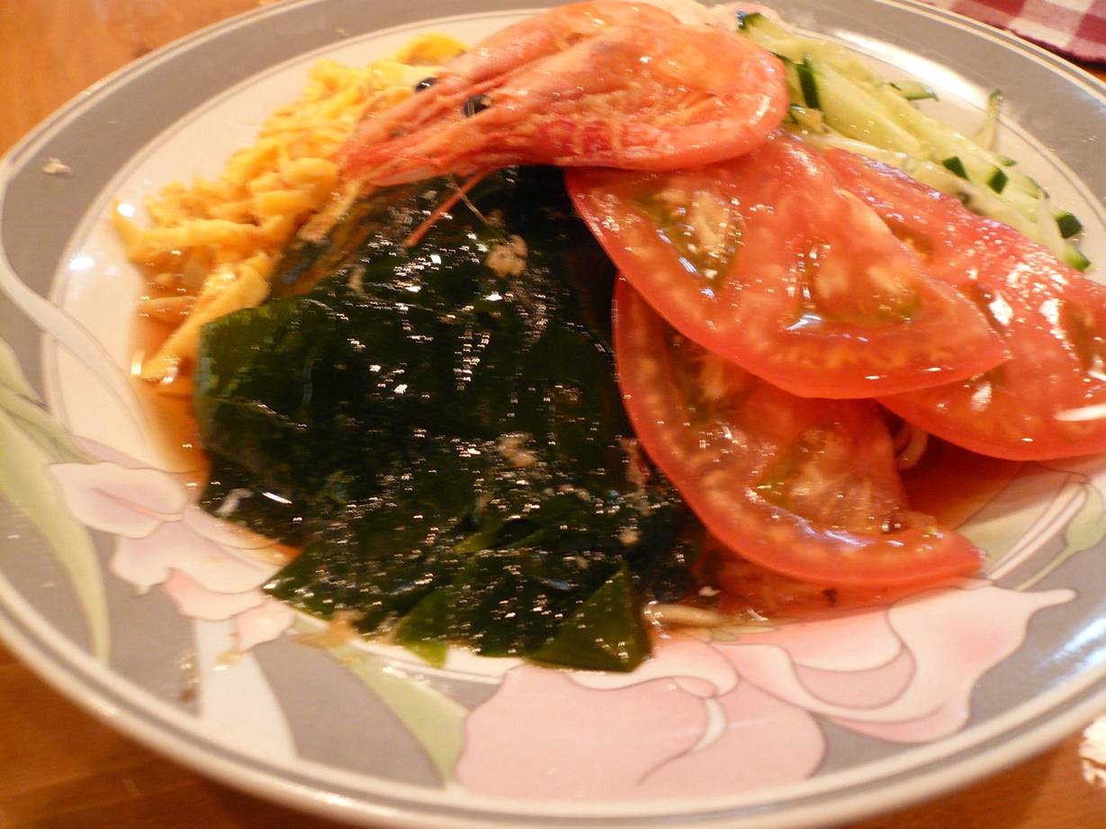 広島市西区横川3-1-23 082-230-6112 やはり暑さは変わらない毎日。 どうしてもやってられないのでまたもや涼しい麺でごまかしを。 最近このお店でも冷麺を始めたという噂を聞きいってみました。 ってより気づいたら一品ものが増えてちょっとした夜は呑み屋系になってるなぁ。 小皿で380円。 どんなんだろう、次は行きたいな。 冷麺800円。 具だくさんをうたっていたが具はエビ、卵、ワカメ、トマト、キュウリとシンプル。 確かに量はなかなかあるなぁ。 麺はプルプル麺で茹で時間が結構あった割には腰があって面白い。 酸味のきいたタレを食べてると、そうですね、冷やし中華を食べてるなぁ、ってしみじみ。 あっさり食べれてよかったなぁ。 具は殻つきのエビを食べてると思った以上に旨い。 ちゃんと味噌に味があって驚いた。 そう来たか(笑)。 ただ結局は結構シンプルな冷やし中華だと思った。 丁寧に作ってはくれてるのがいいかな? ただ次は夜だな。 ご馳走様でした。