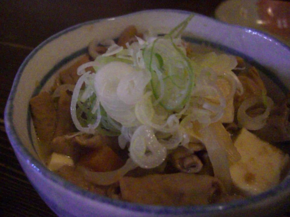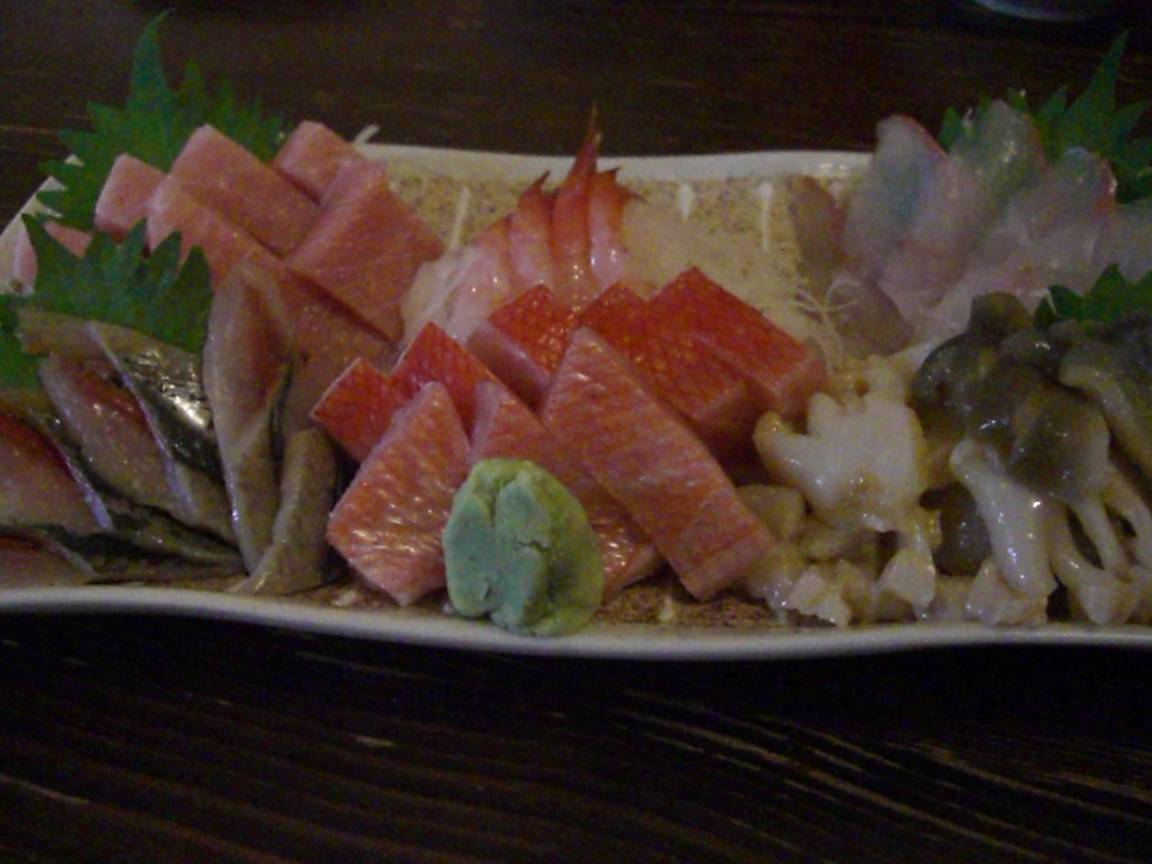 秋田県由利本荘市御門110 0184-24-1213 今日も来てしまいました、このお店へ(笑)。 本音で言えばいろんな店を開拓したのですがどうもここのお酒が好きで思わず時間を作っていただきいってしまいます。 夜2時まで開いてるってのもありがたいしね。 今日は何を食べれるのかな? 刺身盛り。 えーと、確か・・・・。 ヨコワマグロ、甘エビ、ソイ、サンマ、金目ダイ、ホッキ貝だったかな? たっぷりでしょ(笑)。 盛りがいいのがこの店のいいところ。 マグロは甘み(脂の)がたっぷりで、でもさらりとしてて旨い。 エビも甘味がトロリ。 ソイはこっちでは何て名前なんだろう? 聞いたことないけどあっさりしてて旨い。 旬は過ぎてるけど型が良かったから出してもらえるのが嬉しいね。 ホッキ貝は前食べたときのほうが香りが良かったような記憶があるが十分香りがあって旨かったし、脂のある金目を刺身で食べれるのは嬉しいです。 ちょっと生臭みがあるというか脂臭みがあるサンマは残念だったけどね。 これは生姜で食べたかったかな? ホルモン煮込み。 ホルモンはてっちゃんかな? とても軟らかく煮えてて食べやすく味噌とよく合ってる。 なんでもないメニューだけどこういったものが食べれるとうれしいね。 野菜たっぷり、豆腐も綺麗に煮えてるのがいいねぇ。 ご飯で食べたくなりました(笑)。 こまいの焼き物。 タラ系の魚らしい。 ちょっと干した感じで濃縮した感じの味だし、シンプルな味わいだけど旨い。 マヨネーズに七味唐辛子をかけて食べたら、酒にも合うし、そのままでも旨いなぁ。 広島では、もちろん関西でも珍しいものを食べれるのが嬉しいね。 酒を残すともったいないので軽くホタルイカの塩辛。 塩辛ではないな、これは。 沖漬ですね(笑)。 とてもしょっぱくてイカ全身の甘味があって旨い。 臭みもないしいいねぇ。 これで酒が呑めます♪ 最後は冷やしとろろそばで〆る。 さらりと旨かった。 特徴はないけどね♪ でもいい店ですなぁ。 酒もたくさん出てくるし、たっぷり入ってて嬉しいですしね。 また行きたいな。 来た瞬間に「広島が来た!」って言われるのが面白いけどね(笑)。 ご馳走様でした!!