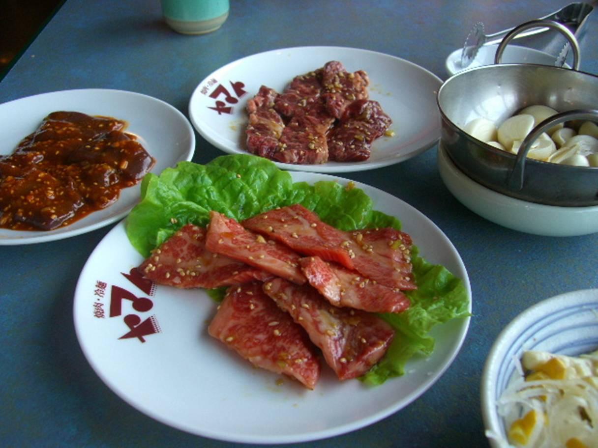 秋田県横手市安田字向田202 0182-36-3311 今日は焼き肉! ってより目的は盛岡冷麺だったのですが、さすがにこの辺りにはない。 ってことで焼肉屋さんで。 焼き肉はあまり行かないのですがたまにはがっつり肉を食べましょう! ってことで行きました。 そんな無茶な値段でなくいい肉が食べれるチェーン店として東北では有名らしい。 楽しみ楽しみ♪ カルビ・ハラミ・レバー・ニンニク。 生モノがこの時期駄目だそうな。 ってことで焼き物を。 ハラミはとても好きな部位なんです。はい。 甘みがあって旨い。 少しこういう肉質ならよく焼いて食べたくなったなぁ。 カルビは脂の甘味があるし、レバーはちょっと甘めのタレが付いててそのまま焼いて食べると旨い。 やはり少し重くなるけど軽く食べるにはいいなぁ。 ほっとします。 あと甘さが強いタレは東北らしいなぁ(笑)。 ニンニクはこのまま網の上に置いて焼く。 焼くときに軽く油と鷹の爪を入れてあるから気づけばガーリックオイルに。 これを鍋ごとさらに置いて食べるとやはり油によくなじんで旨い。 ってよりあ間違えのない食べ方ですね(笑)。 後で臭いのもありありで♪ 石焼ユッケビビンバ。 とてもよく焼けた石の上にビビンバとユッケ。 ユッケは混ぜると普通に肉となる(笑)。 でもよーく混ぜて食べてみると焼けたお米の香りと具の味の濃さが丁度混ざって旨い。 ほくほくと食べれて特別な感じはないけど旨いなぁ。 盛岡冷麺。 盛岡冷麺の辛めを頼んだのですが飲んでみてもそんなに辛くない。 そして出汁は軽く引いてる程度であっさり。 麺はかなり柔らかめ。 太くて柔らかいのはどうかなぁ、って思ったけど意外と旨い。 最後には少し飽きる感じはあるけど、夏の暑い、そして肉の強い後に食べるにはいいですね。 これにサラダバーをつけて一人2,500円くらい。 ありがたいって言えばありがたいですね。 次は生肉を食べたいなぁ。 ご馳走様でした。