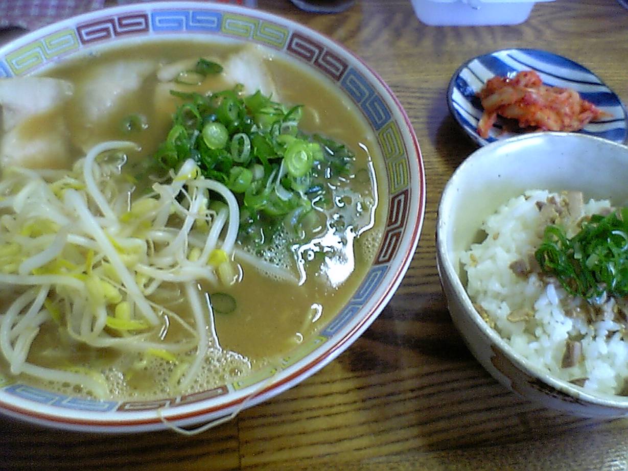 広島市西区三篠2-10-2 今日はちょっとムカついてたので普通に旨い店が食べたくてやってきました。 この辺りで一番好きなラーメン屋さんへ。 前回は初めて行った時と少し味が変わってたので今回はどうなってるかなぁ? ラーメン定食700円。 ラーメンにチャーシュー飯とキムチがついてる。 ラーメンに150円をつけてこれがつくと割とありがたい(ラーメンは550円ですからね)。 相変わらずゼラチンのようなトロっとした濃くがたっぷりした旨さなんだが、だんだん優しく食べやすくなってる気がする。 徐々に香りも優しくなってる気がするなぁ。 でも濃いだけのラーメンよりよっぽどいい! 少なくともラーメンマニアみたいな人ではないので自分は食べやすくとても旨い。 前より好きになってきた(前の香りも捨てがたいが)。 具も相変わらず旨くて満足した! 夜には餃子や味噌(だったかな?)ラーメンもあるみたいだ。 まだまだここには通いたいぞ! ご馳走様でした!!