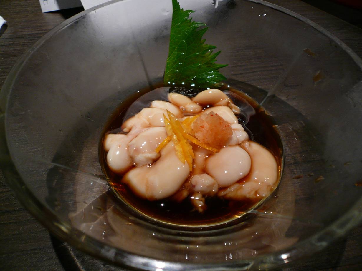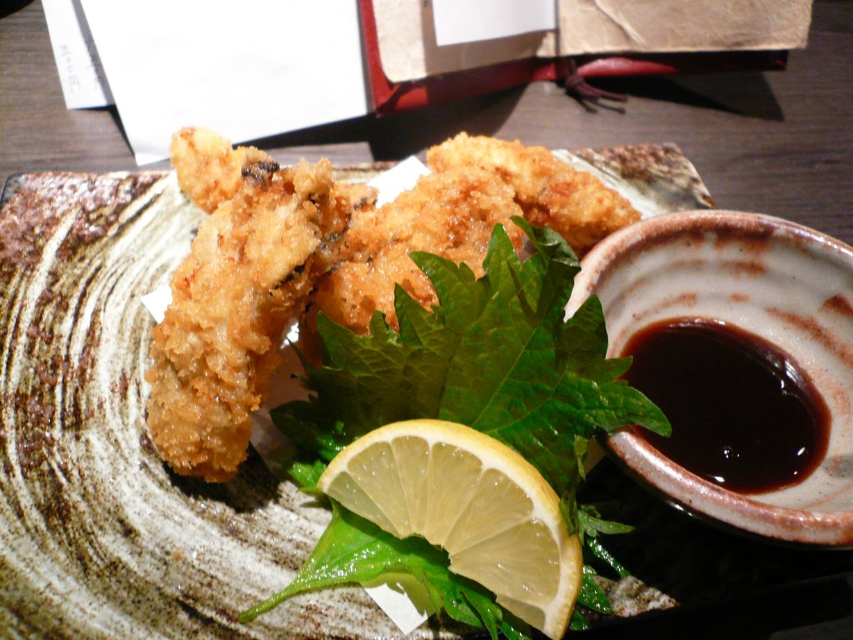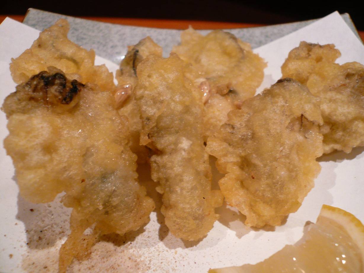 広島市中区西白島町17-7 082-221-5518 今日はちょっと気分がいいので2軒目へ。 まぁたくさん食べれない気分なので(なら行くなよ)、軽く頂きます。 お酒とともに・・・。 でもなんだかいい緊張感がある相変わらず何度行っても気分がいいお店だなぁ。 牡蠣の天ぷら。 いつもならカキフライだがこのお店は牡蠣の天ぷらがあったのでチャレンジ! でも、これが旨いんだよ♪ カキフライって香ばしい香りとの楽しみがいいやん♪ でも天ぷらだともろにカキの香りばかりが立つ。 牡蠣好きにはこっちがさらに旨いではないか! 余計なものを省いて牡蠣の過熱を上手にできればこれは最高だなぁ。 酒にもよく合うし幸せだなぁ♪ また次も行きたいがお腹を空かして行きたいな! ご馳走様でした!!