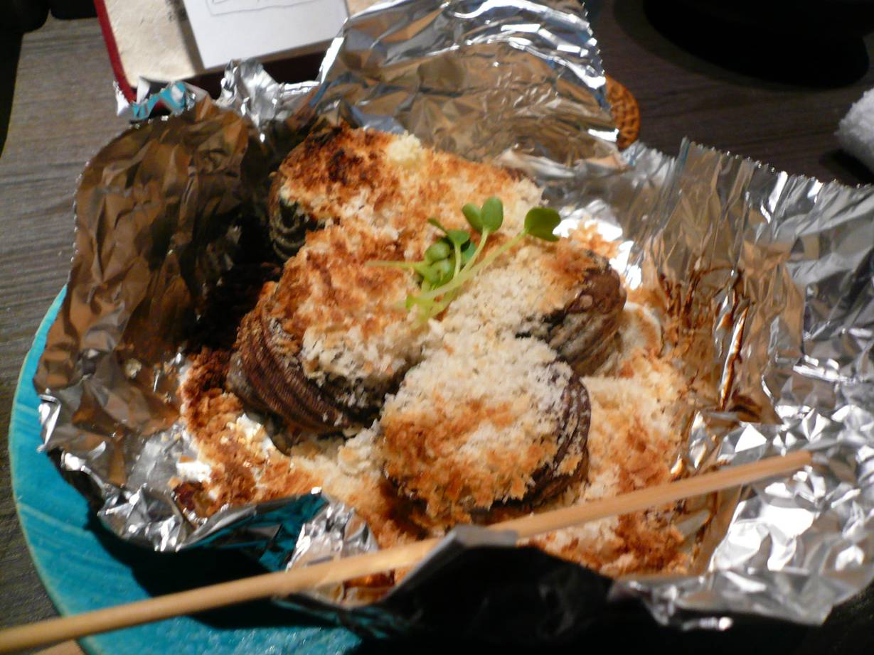 広島市中区立町3-23-2 082-247-1986 今日は広島で新年会第一弾! ちょっと知らないお店で街中のビルの2階にあるお店。 分かりにくい感じなのでお客さんはいっぱい。 びっくりしたなぁ(笑)。 日本酒もたくさんあって面白そうだ。 白子ポン酢。 何の白子でしょう(笑)? ただとても甘く匂いなんて全くない。 トロっとした食感も旨いなぁ。 たぶんいいものなんでしょうねぇ♪ カキフライ。 カキフライって不味い所はなかなかないけど最近大きな特徴がないなぁ。 なんて思ってたけど、ここは確かに旨いなぁ。 旨みとかではなく、純粋に香りが凄い。 ぶんぶん来る香りが贅沢だ。 ただこれを「下品」と言う人もいた。 難しいなぁ・・・。 小サザエのパン粉焼き。 パン粉が強くてサザエの味がちょっと分かりにくいが歯ごたえは楽しい。 サザエのこりっとした歯ごたえとパン粉のカリカリ感。 この取り合わせの楽しさはいいかも♪ そして日本酒は1,000円でこの量の日本酒が3種類自由に選べる。 これは楽しい。 でも結局5,000円くらいしたかな? お腹いっぱいにはならない量なので少し高い気もする。 背伸びしたいときにいいかも。 味もお酒もいいしね♪ ご馳走様でした!