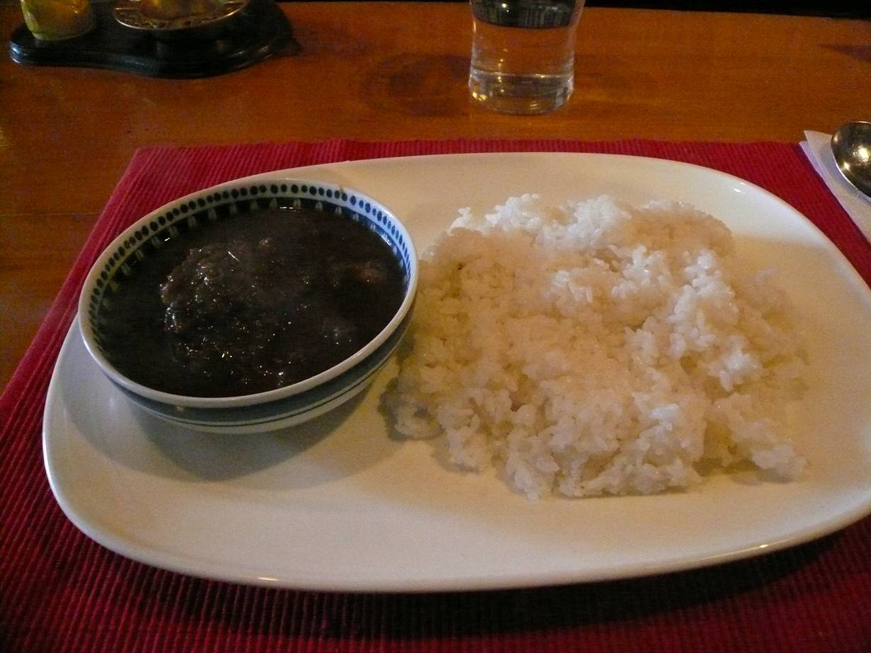 秋田県由利本荘市八幡下157 0184-24-3418 今日は秋田とは関係ないけど美味しいと聞いたカレー屋さん。 やはりカレーとラーメンは遠出でも食べたいもの(勝手な感想)。 って言う人が多いしね♪ せっかく書いてる日記だから行って見ました(そんな気は全くなし)。 入ってみると音楽がシックに流れた喫茶店のような雰囲気。 独特の感じがいいなぁ。 すじインドカレー800円。 ちなみにすじカレーもあったが違いはルーを作るか作らないからしい。 こっちは作ってないさらっとした感じ。 食べてみると、意外なほどスパイス感がない。 でも全く重さもなく食べやすい。 これは意外なカレーだな。 物足りない感じもするが優しいしみじみ感があって面白い。 スジはとろとろ。 柔らかくとてもスジらしく旨いですなぁ♪ ちなみに具はすじ以外気付かなかった。 焼カレー850円。 こっちはルーをしっかり作ってるやつ。 よくある感じですが、卵を絡めたりチーズを絡めたり。 これはこれでジャンクで旨い。 ってより意外とこれ、旨いですねぇ。 これだけ強いものが入ってても食べられるのは店の腕かも。 なかなか楽しいカレーだな。 これはこれで楽しいお店でした。 仕事のランチでゆっくり入りたいなぁ。 これまたなかなか行けないですが近くに欲しいなぁ。 ご馳走様でした!