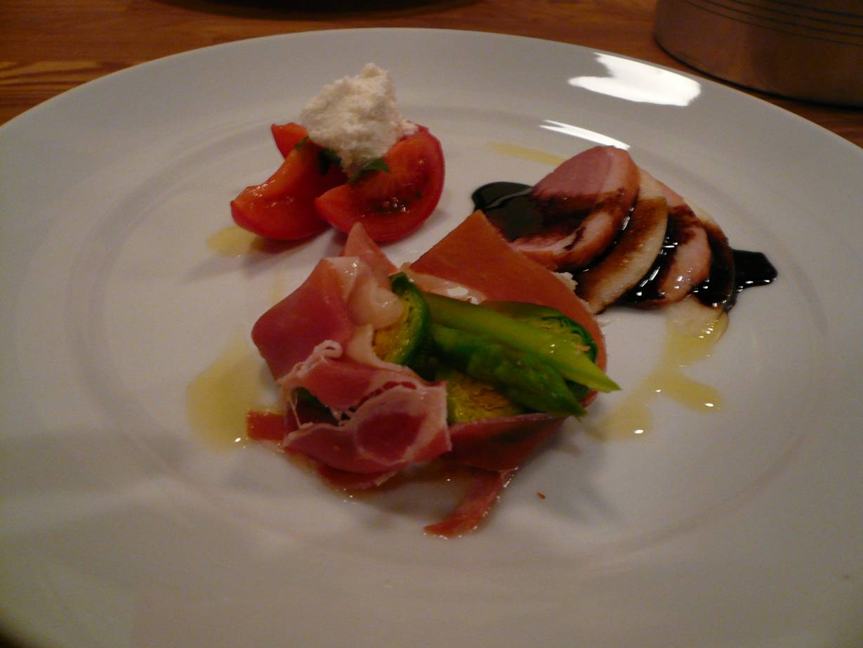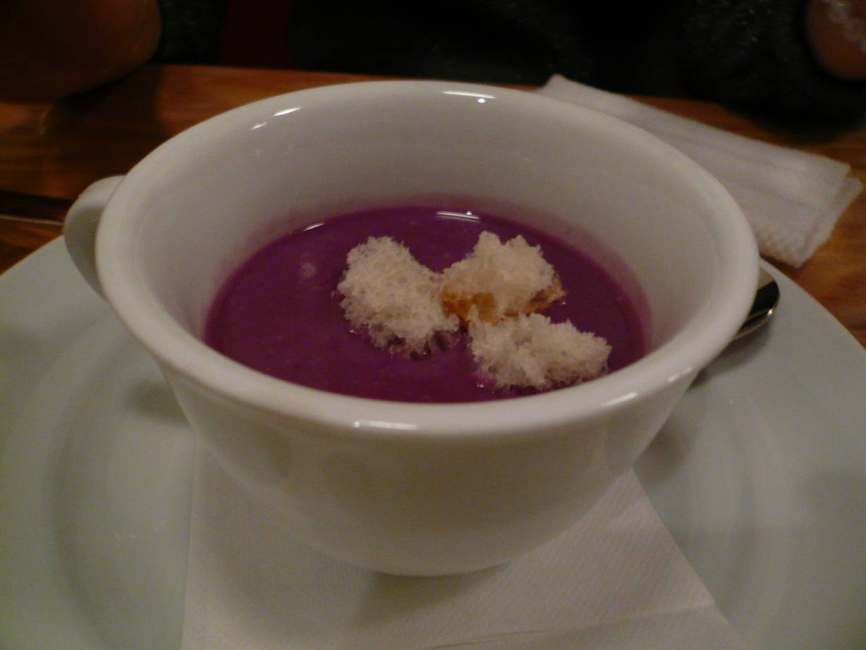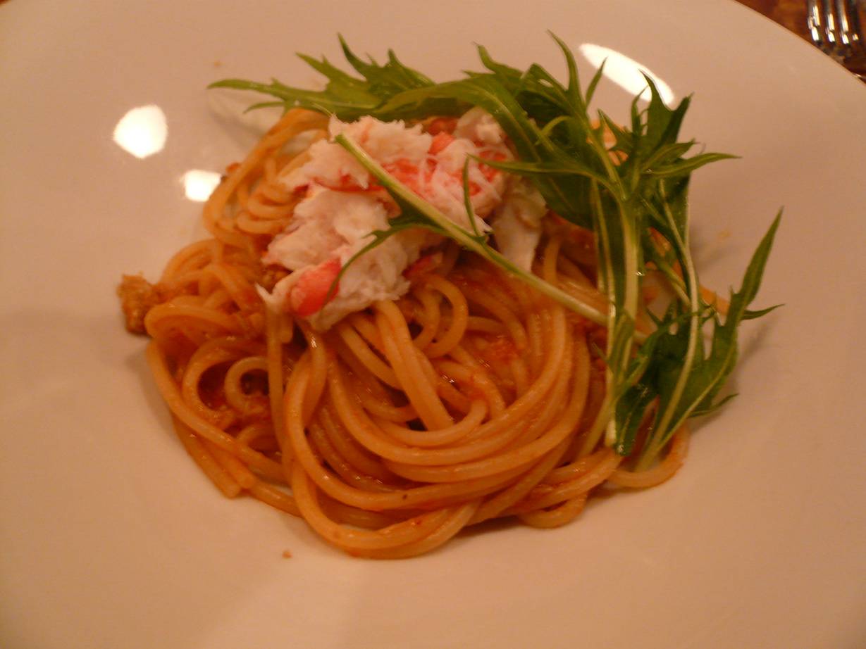 広島市西区横川町3-1-28 082-238-4935 今日はイタリアンでちょっとぜいたく食事。 ってより美味しいシャンパンやワインがあるということでやってきました。 まぁ前回も居酒屋的に使った感覚があったのですがね(笑)。 ムラサキイモのスープ。 滑らかで優しいスープ。 でも香りが特徴ですよね、ムラサキイモって♪ 自分は好きですね。 なんだか間違えの無い感じですが。 オードブル。 鴨の洋ナシのバルサミコソース、トマトとモッツァレラ(多分)、生ハムと芽キャベツ、アスパラ。 鴨と梨の相性ってきっといいんでしょうね。 あとバルサミコとの相性もいいんだろうなぁ。 トマトとモッツァレラってのもさらりと食べれる。 生ハムも硬めの芽キャベツも香りがよく合ってるなぁ。 アスパラガスって旨いなぁ、っても思う。 ただインパクトはどれもかなり弱め。 コースのジャブでも軽いかな? タラバガニのトマトソースパスタ。 タラバって香りが軽いけどカニらしい甘さがあって旨いなぁ。 トマトのしっかりした旨さもあってこれは流石ですねぇ。 なんだかこれも安心して食べれて旨いなぁ。 なんだか綺麗に盛られてるが、そのとおりの味が食べれた感じがする。 そう、盛りつけと同じ味って言うのかな。 そんな感じ(どんなんやねん)。 タイのソテー。 ちょっと火の通りが強くてぱさっとした感じがあるけど、タイの香りがいいから旨くまとまってて旨いなぁ。 あと魚って皮が旨いなぁ、ってしみじみ。 パリッとしてて脂が軽くあって大好きだなぁ。 濃縮度の高いソースで食べるけど香りが消えなかったのがよかったなぁ。 牛ほほ肉の煮込み。 やわらか~い! やはり繊維質と逆に切っても簡単に切れるほど旨い。 肉の風味はちょっと感じないけどワインでよく煮込まれた感じがたまらないし、下のジャガイモのマッシュ(かな?)とソースもよくあって旨い。 これはワインががぶがぶ行ってしまうではないか(笑)。 追加でチーズをいただく。 どれも強さがあって楽しい感じ。 ただやはり自分はブルーチーズ系が好きなだけに、強さに走ってしまい、繊細な部分はよくわからず。 まぁとても旨かったってことは感じましたが。 このあとドルチェがパンナコッタとアイス、チョコケーキがついたのかな? 写真は忘れたけどどれもインパクトの強さより、上手にまとまってるなぁって印象。 全てに安心して食べれました。 こういった安心感もいいですねぇ。 まぁこまごま書いたけどかなりお酒も呑んでたので詳細な部分は旨くわからず(苦笑)。 ただいいお店だとは思います。 また呑みに行きたいなぁ(そんな使い方しかしていない)。 ご馳走様でした。