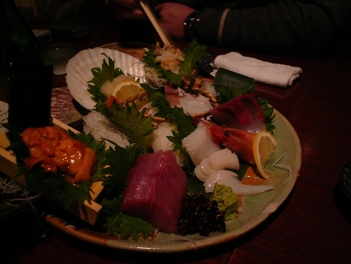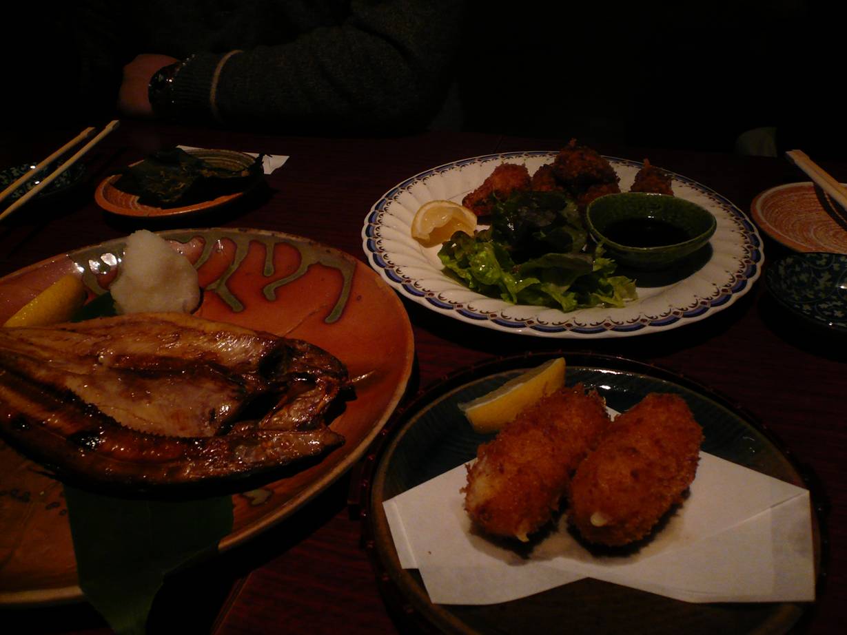 大阪市北区堂山町6-9 06-6361-5155 今日は北海道の料理を食べれる居酒屋さん。 お酒や焼酎はかなり量が多い(値段もまぁするが)。 なんだか豪快な料理で何となく大阪っぽいお店のチェーン展開している雰囲気。 まぁ気軽に行けていい感じだったなぁ。 あんきも。 こってりしているがかなり普通の感じかな。 これが北海道って感じはしないが旨い。 酒が進みそうだなぁ。 カキフライ・ほっけ・カニクリームコロッケ ホッケは意外と脂が強いけど少し水っぽい印象。 ただ濃いだけのほっけも食べにくいのでこれはこれで旨いかもしれない。 カキフライは、う~ん。 ちょっとどうなんだろう? あまり旨さは伝わらなかった。 せっかく寒い地域のカキと言うことで楽しみにしたのだがなぁ。 水っぽくて牡蠣の強さが全くなかったなぁ。 周りはこれくらいが旨いということだったけど・・・。 カニクリームコロッケは残念ながら食べなかった・・・。 刺し盛り9種類。 刺身も寒い地域から取り寄せたらしい。 どうも、自分には合わないのかもしれないが、逆に食べやすさもあったのでありがたい。 でもこういった店のウニとかは最近苦くなくて食べやすいのねぇ。 痛感痛感。 三が日にも開いてるし、テーブル、カウンター、座敷と揃ってる。 ほんとにありがたい店だと思う。 こういった店があるとほんとにうれしいなぁ。 値段は一人6,000円くらい。 まぁこれ以上に食べて呑んだからなぁ。 まぁ値段は妥当だと思います。 ご馳走様でした。