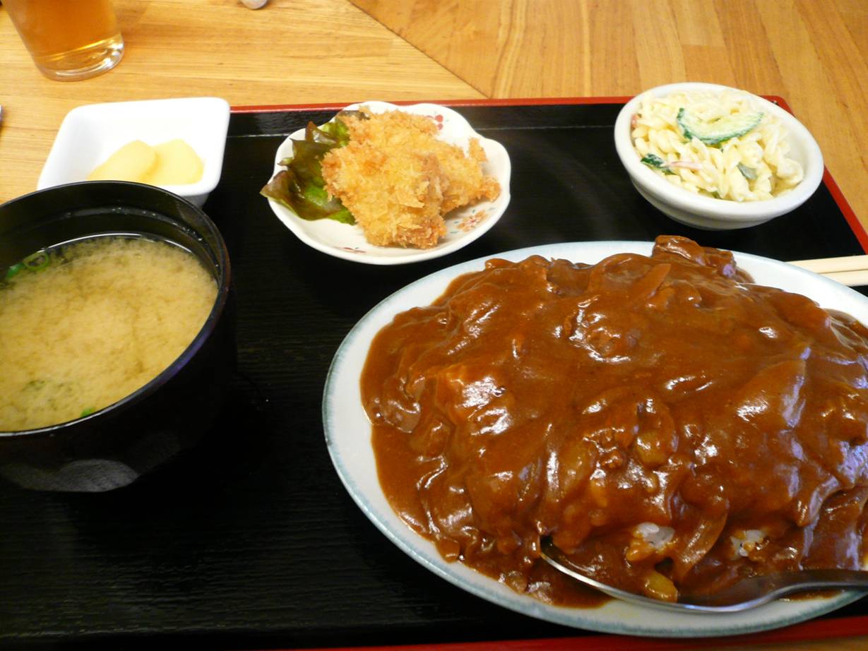 広島市安佐南区長束町3-34あたり 今日は昼にやってきたお店。 以前夜も開いてて気にはなってた定食屋さん。 入ってみると女性が一人で料理をやられてた。 メニューもわりとあって楽しみだなぁ。 昼定食600円。 献立は山盛りのカレー・ミニとんかつ・味噌汁・マカロニサラダだ。 カレーは少し重めのカレーでもったりしている昔風のカレーだなぁ。 そうそう、おかんが作ってくれてたカレーってこんな感じだったなぁ。 具も肉や野菜がたっぷり入ってる家庭的なカレーでありがたい。 とんかつは脂身が結構ついててなかなかヘビー。 ソースがいりますか?って聞かれたけどカレーがあったからパス。 ただ揚げたてだけにありがたい。 マカロニサラダは普通だし、変わった風味の味噌汁があって、最後にコーヒーまでついてくる(たぶんんインスタントかな?)。 サービスは満点ですなぁ。 ゆったり食べて腹いっぱいになって帰ると嬉しいですね。 次はうどん系かな? ご馳走様でした。