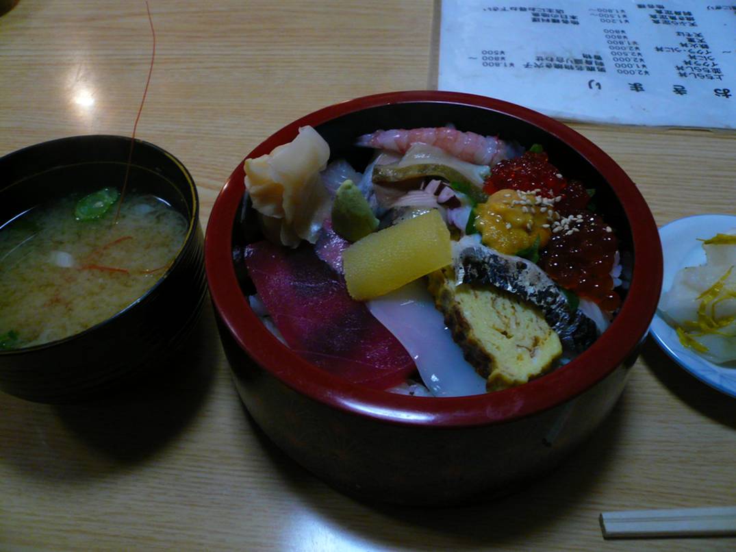秋田県男鹿市北浦湯本字草木原1-7 0185-33-3310 今日の晩御飯はお寿司屋さん。 こういったところならお寿司屋さんで海鮮ものを食べるのが一番の幸せだろう! ってことでやってきました。 ただ、これからのイベントもあったのでさらりと食べれる物にしなければ。 一貫ずつ頼んでたらなぁ・・・。 上ちらし2,000円。 ウニイクラ丼にしようと思ったら、お店の人が 「いくらもウニもシーズンじゃないし色んなものを食べてもらった方がいい」(秋田弁で)。 って言われたのでこっちへ。 うに・いくらだけでなく・数の子・マグロ・サバなどなど。 うーむ、なるほど旨い。 海鮮ものは確かに旨いなぁ。 甘い香りと新鮮感があっていいなぁ。 よく熟成とも言うがこの新しい香りも自分は好き。 卵焼きが出汁巻きでなく普通の卵焼きってのも面白かった。 でももっとお店を調べて、偶然性をなくさないと・・・・。 なんて思わないでも旨い店があるんだから贅沢なことだ。 ご馳走様でした!