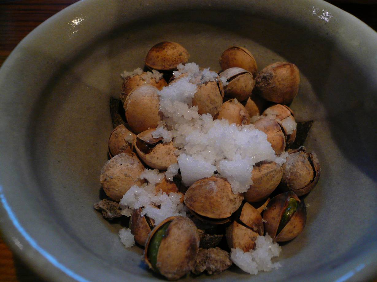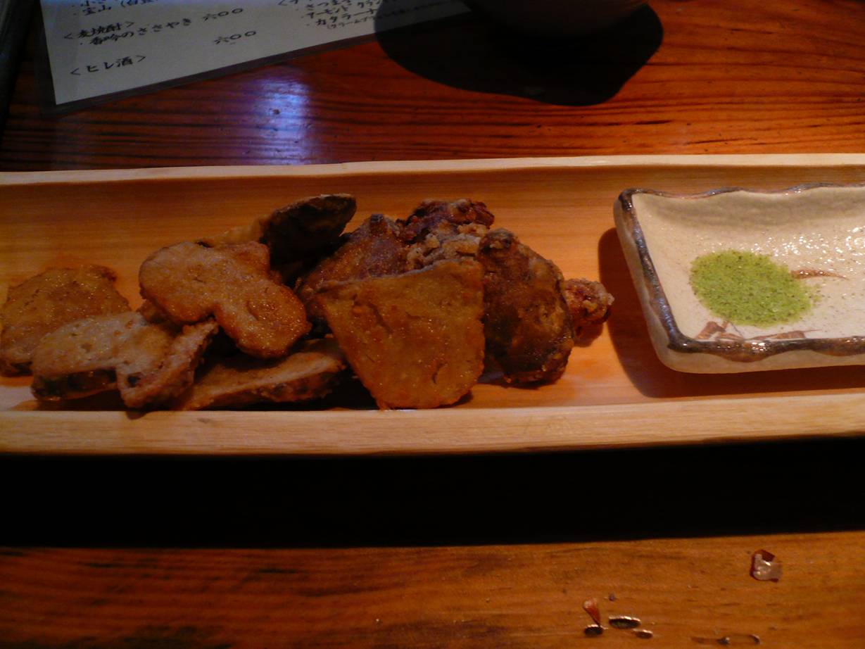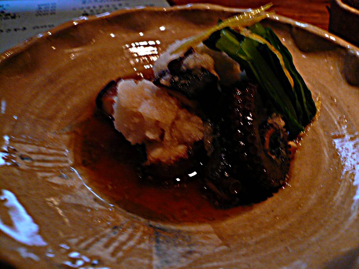 広島市安佐南区中筋1-7-12 082-876-2693 今日は会社の帰りに1年ぶりに行ったお店。 ってよりコンパをやってて騒がしい感じだったけど、お店の中はご主人さんが黙々と料理をしている。 周りのスタッフさんが静かに働いている。 なんだかゆったり食べれる感じだなぁ(今日はちょっと違うけど)。 タコの柔らか煮600円。 タコは柔らかく、でも歯ごたえがちゃんとある。 でも少し味は抜けてしまってるかなぁ? これはシーズンなのかな。ちょっと無念。 ってのも大根おろしではなく蕪をおろしていてそれが少し独特の風味があって、またゆずの香りが強いからちょっと訳がわからなくなるなぁ。 ううむ、悔しいぞ! 塩炙り銀杏400円。 銀杏を丁寧炙ったタイプ。 炙った香りも銀杏の軽い香りも旨いなぁ。 ってこれは思った通りの旨さで嬉しいなぁ! 間違えない!って感じだ。 菊芋の天ぷら400円。 菊芋?って里芋? って感じで思ったら食べたらジャガイモ。 ちょっと癖のある香りもあるかと思ったらわりと無難に食べれる。 でもいい経験かも。 油によく合って軽くジャンクなものになってビールによく合うなぁ。 基本は魚系がメニューに多いのだけど、お勧めを頼むとこんな感じに。 次はゆったりと行きたいなぁ。 ご馳走様でした!