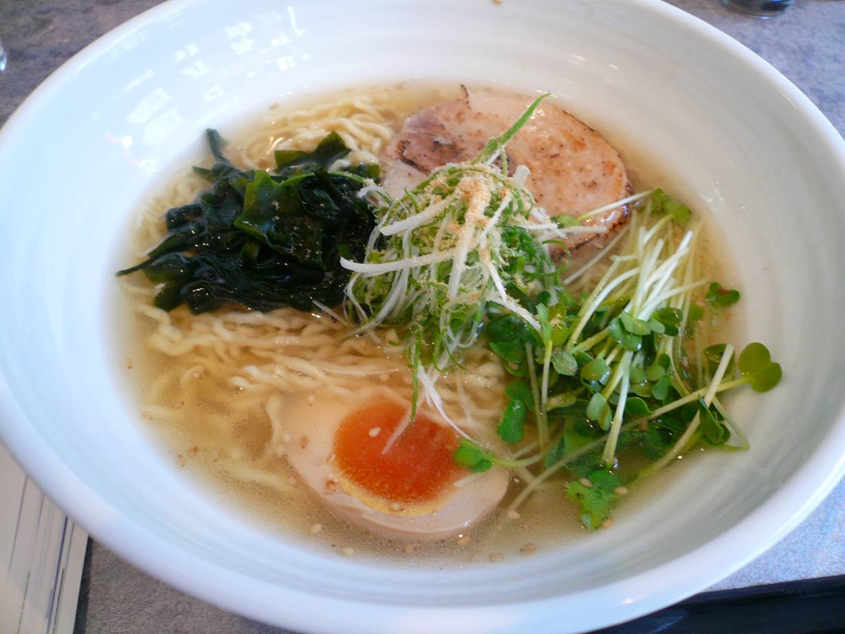 広島市南区出汐3-9-19 082-252-7410 今日は以前行ってフラれたお店。 ちょっと遠くて何かの理由がないと行けないのですが、ちょっと理由があり訪問! やっと行けたぁ!! お店は小さなカウンターだけ。 ちょっと若いお兄さんが一人でのんびりされているお店だろうか? 海味そばセット800円。 ラーメンは随分と縮れた麺と、澄んだスープの取り合わせ。 スープは魚介の出汁らしいが、ちょっと香りがラーメンぽくない。 どこか魚介がパンチが強すぎる魚介だろうか? 面白い香りがするスープだ。 魚介だけでもこんなに面白い味が出るんだぁ。 これは個性だなぁ! 麺はプルプルの柔らかめで麺の優しさにとてもよく合ってる。 旨いなぁ♪ チャーシューも炙って分厚いのがほろほろ崩れて面白い。 カイワレやワカメなどアッサリを強調させようとしている節が感じられてバランス重視かな?? なんだか粉末のものがいい香りと何故かジャンク感を感じさせていたのがまた面白かった。 セットにはご飯。 これにスープをかけてトッピングをつけてお茶漬けにして食べる。 そりゃねぇ、この魚介系で塩味のスープならご飯に合うよね! するするいけるし、アクセントのワサビは旨く考えてるなぁ。 これなら残さずスープを食べれます。 ちょっとお客さんが少ないけど、マイペースにやられている感じがして自分は好きだなぁ。 ってよりこんな個性的なお店は食べててうきうきするなぁ。 また行きたいぞ!!!! ご馳走様でした!!