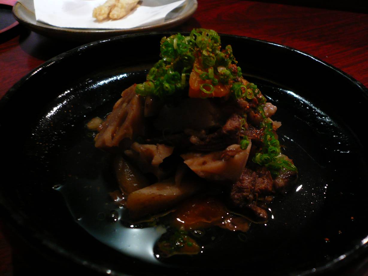 広島市西区横川町3-1-26 082-238-0354 今日は知り合いと呑みに来ました。 ちょっとお勧めをってことで最近気に行ってるお店へ。 ここは居酒屋?って感じの料理なんですがお酒も面白いものがたくさん置いてあって楽しいお店ですねぇ。 最初のつきだしのイカとたらこの和えもの(名前はなんだっけなぁ?)から塩分控えめ。ちょっと笑えましたなぁ。 出汁巻き卵 やわらかく香り高く焼いてある卵焼き。 そして塩分控えめ(笑)。 いや、家庭的な塩分量で食べれる優しい味だなぁ。 実はこういった味も好きだったりする♪ 四方筍の天ぷら。 細い感じの筍。 今がシーズンということで食べてみた。 もっと若い味がぶんぶんするかと思ったら意外と普通に筍かな? 柔らかさが特徴だろうか? イメージと違ったが旨かったけどね。 酒盗コロッケ。 ゴロゴロ入ったジャガイモの中に酒盗が入っているコロッケ。 ハフハフ言いながらジャガイモたっぷりのコロッケをかぶりつくと酒が進むなぁ。 これまた軽い塩分で途中でバシッと酒盗の塩分と香りが戦ってくる。 面白い料理だなぁ。 家庭的な煮物って感じかな? スジ煮込みのゴロゴロ感がないのは寂しいが、味的にはよく煮しめてあって旨かったなぁ。 赤足海老(だったかな?)の焼き物。 海老の頭の味噌がたっぷりで香り高く香ばしい。 甘みもあってこれはエビ好きにはたまらないなぁ♪ 海老って焼くとこんなに甘みが出るのね! 今日も美味しく食べれたけど居酒屋とは思えない塩分で食べれるのは個性だと思う。 それもいい具合に。 でも好き嫌いは出るかもね。 次は何が食べれるかなぁ? ちなみに酒を二人で2杯くらいずつのんで5,500円くらい。 値段もありがたい! ご馳走様でした!!