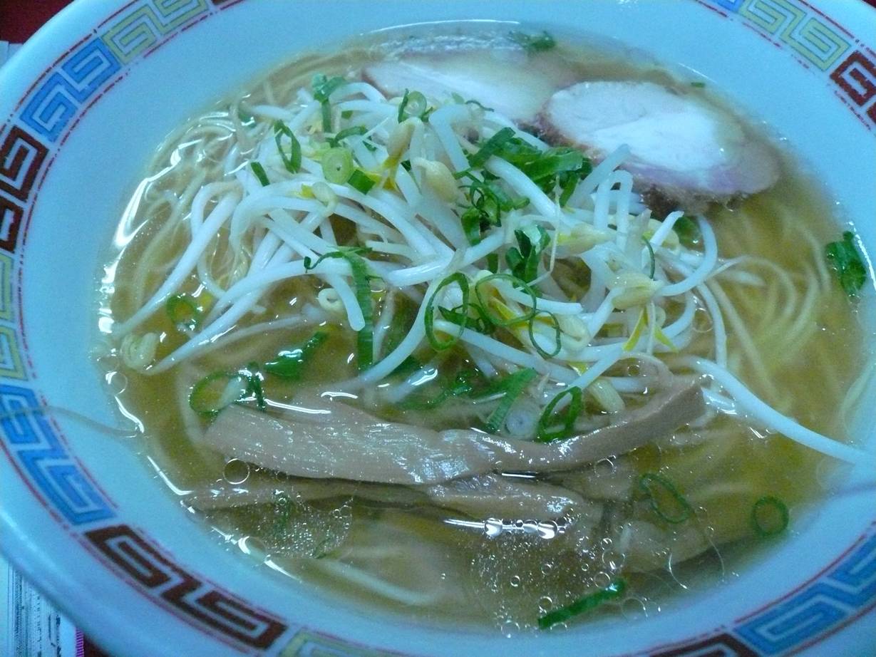 広島市西区横川町3丁目1-6 082-291-6994 今日は夜勤が遅くなりそうなので(単なる残業だが)一度行ってみたかった中華屋さんへ。 どうしても夜営業のお店はなかなか行けない。 しかもがてん系のお客さんが多く、常連さんの塊のようで行きずらかったお店。 行ってみたら、思ったより若くスマートなお店のご主人と奥さんでやられていた。 もっとあくの強そうな雰囲気のお店なのに(笑)。 塩ラーメン550円。 表面には少し油は浮いてるけどしつこくなく、見た目以上にあっさり。 塩ラーメンの優しさをもろにアピールしてくれているラーメンだ。 出汁とかはよくわからないけど、丸い感じなので呑んだ後にはいいかもしれない。 麺は少し柔らかめのちょっと細めかな? チャーシューも柔らかくモヤシもシャキシャキしていた。 特別さはないがとても安心感を与えてくれる感じだ。 他のメニューも高くないしまた夜食にいい店を見つけたかも。 次は丼系かな? ここなら全然軽い気持ちでいけそうだ。 ご馳走様でした!