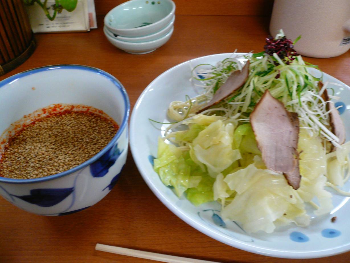 広島市西区横川町3丁目3-7 082-231-0200 今日は最近横川駅前にオープンしていたつけ麺と焼きそばのお店へ。 完全テイクアウトのお店で店内ではイートインできない。 メニューを見たら焼きそば系は随分安い。 けど、つけ麺は意外とするなぁ・・・。 どっちにしようかな?? つけ麺750円。 つけ麺は量がわずかだけど普通の店より少なめかな? とりあえず公園で食べてみたのだが、麺はしっかり固めにゆでられておりふにゃふにゃになっていない。 これはありがたい! タレはラー油がメインかな? 辛めがいい人は選べるのかはわからないが自分は標準系で十分だった。 野菜はかなり少なめかな? でもキャベツが旨かった。ちゃんと葉のところをメインに使ってたので食べやすいしね。 チャーシューは、まずまず。 脂身が少ないところを使ってるだけに食べやすい。 こういった店をうまく利用することで、自分にもいい環境が作れそうだなぁ。 ありがたくなる店だろうあぁ。 次は焼きラーメンも安かったし(400円前後だったかん?)焼きソバもある。 次は何にしようかなぁ? ご馳走様でした!