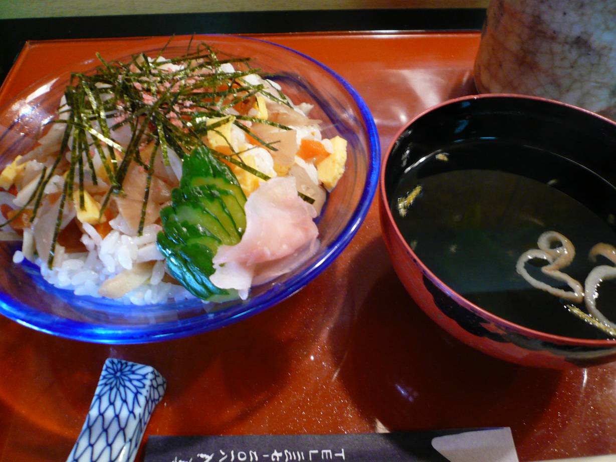 広島市中区榎町2-3 082-297-5757 今日はうろうろしてると見つけた綺麗なお店。 ちょっと敷居が高いかなぁ?なんて覗いていたが思いきって入ってみた。 店の中では若い職人さんが2人で回していて、客に伝わる静かな気合いが感じられてきた。 たまにはこういった緊張感もいいなぁ。 ってより新しいお店だろうな。 とてもきれいで好感度は高いなぁ♪ ちらし寿司セット950円。 ちらし寿司に、吸い物、菜っ葉とお揚げさんの炊き合わせ、漬物だ。 ちらし寿司はほんの少しだけ甘みのあるご飯で炊いてあって、酸味も軽くて食べやすいなぁ。 そこに錦糸卵やデンブを敷き詰めて刺身を一切れずつのせている。 刺身もご飯が程良く冷えてるから生臭くないし、食べやすいなぁ。 ってよりマッチ感はないが一つ一つを楽しく食べれる、いいちらし寿司だなぁ。 お吸い物は魚介ものとたらこのようなプチプチしたもののすり流しがそこにあった。 あっさりの中に、ちょっと強い魚の味が感じれて楽しいなぁ。 炊き合わせも、しっかりと旨いお揚げさんが入ってていいなぁ。 気合いが伝わってきたお店の人(若そうだったけど)のテンションが気持ちいいし、ここは好きだなぁ。 ちょっと夜にお寿司は怖いが(偏見か?)行ってみたいなぁ。 ご馳走様でした!