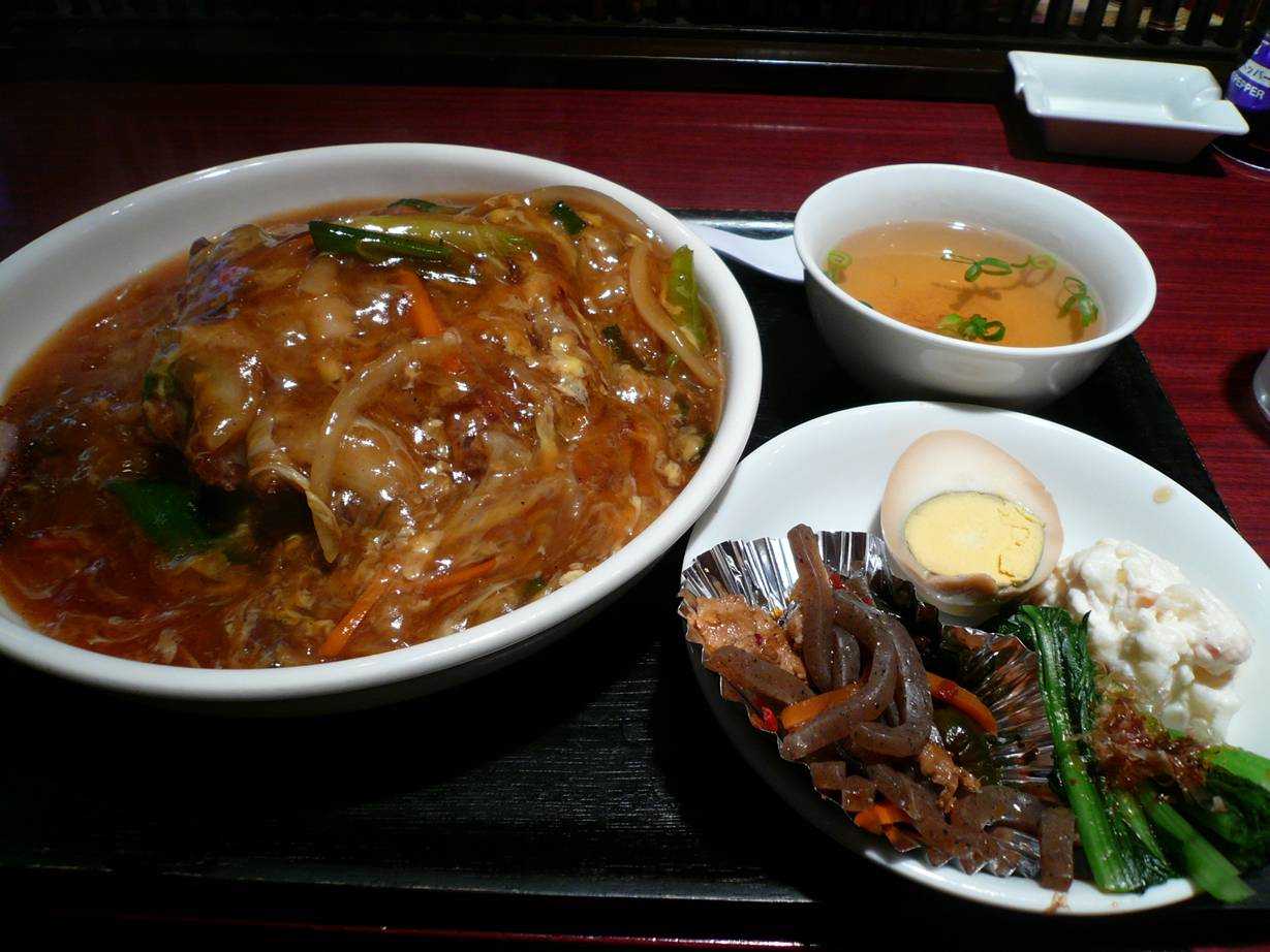 広島市中区三川町9-16 082-249-0006 今日は街中にある何を食わせてくれるのか想像つかない店(笑)。 なんとなく中華屋さんって気がするがどうなんだろう? でも意外と中はハイカラな感じで古さは感じない。 メニューは、いろんなものがあったがどう見たって目立つものがあったのでチョイス。 中華風カツ丼セット850円。 中華風はあんかけカツ丼だ。 カツに野菜の入った餡がたっぷり入ってる。 そして煮えかえる感じがするくらい熱々。 食べてみると、甘みではなく胡椒がたっぷり効いた小気味いい餡。 そこにガリガリ系の衣がついたカツ。 そら合うよなぁ♪ それに野菜もとれるし熱々だしご飯がたっぷり。 ジャンクなご馳走だと言えそうだね! トッピング的についてきた野菜はずいぶん甘く味付けされてて、茹で卵はこぽこぽ系。 面白いトッピングでスープも飲めた。 ちょっと面白い店だなぁ。 次はラーメンかな? ご馳走様でした! PR