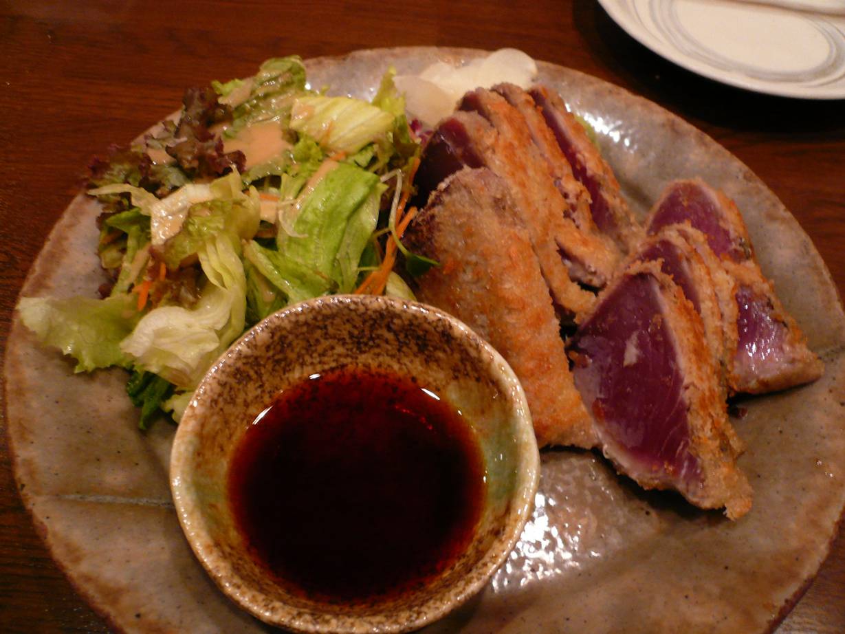 広島市中区流川町3-17 082-542-7555 今日は以前お仕事させていただいた方からの紹介。 息子さんがこちらではたらいてらっしゃるらしい。 しかしこういった紹介って怖い気もする・・・。 外したらなぁ(苦笑)。 でも入ったらびっくりするくらい綺麗なお店。 財布の中身を気になるくらいにね(笑)。 最初につきだしでクラゲのポン酢和え。 これがあっさりしてて歯ごたえがあって旨かった。 もう期待できますね! カツオ。 たたき状にしてパン粉で焼いたらしい。 食べてみたら熱々。 でも生。 変わった食感なのに鰹臭さは全くない。 これはめちゃ旨めぇ~!! これでこの店の価値は決まった! 最高ではないのか!? レバーの鉄板焼き レバーは甘い香りがして、少しレバー臭さもあるがこれも酒によく合うなぁ♪ レバーって旨さが強いだけにいいねぇ♪ 豚トロの鉄板焼き 豚トロの脂って独特だねぇ。 脂が甘くて、歯ごたえがあって旨かった。 ってより脂を食べるって感じだねぇ。 酒が進んで仕方ないではないか! これで酒を4杯呑んで4,800円。 デートにも接待にも使えそう! ここいい!! 凄く気に入りました。 ありがとうございます♪ ご馳走様でした!!