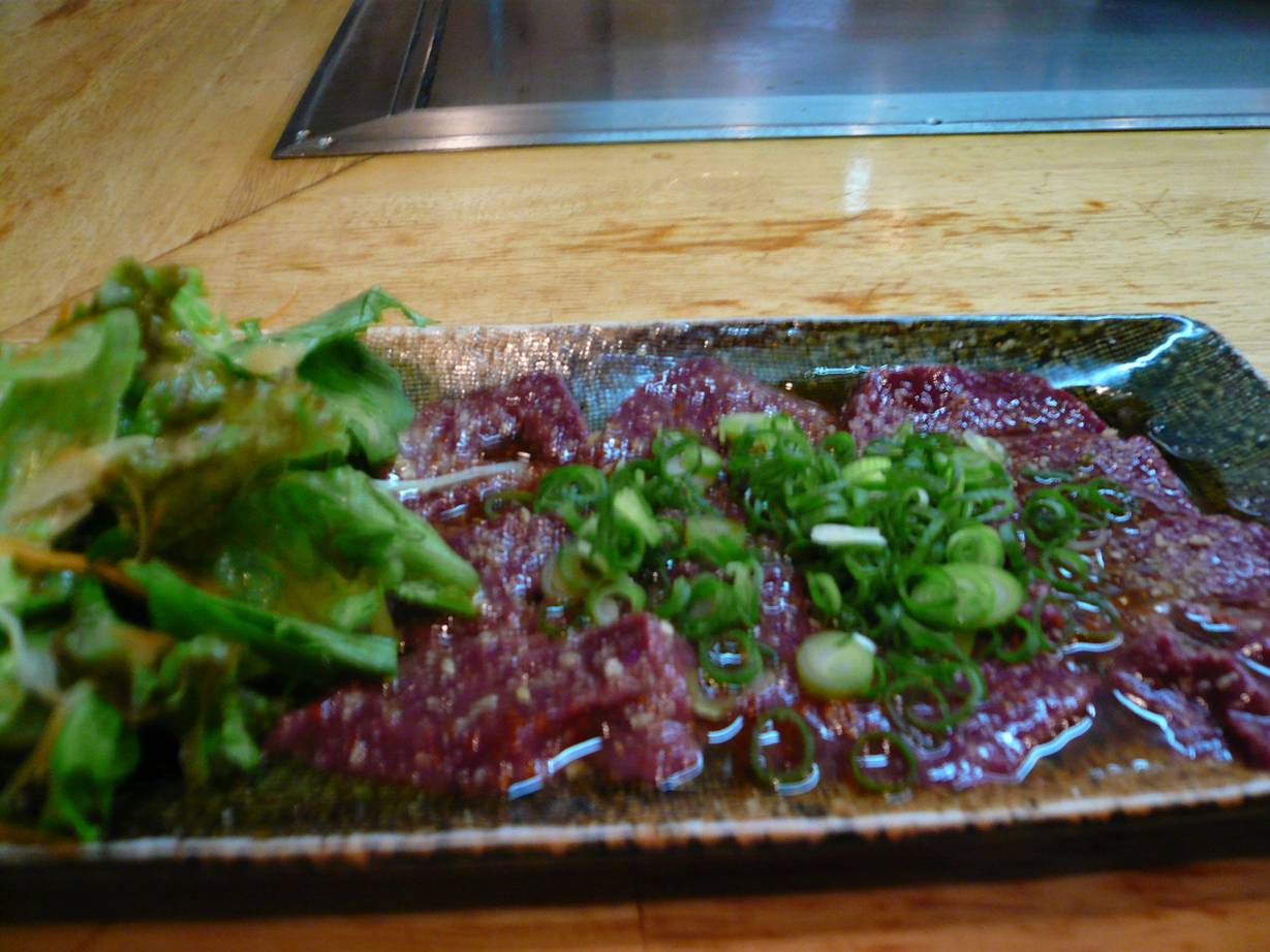 広島市中区流川町3-17 082-542-7555 今日は送別会の2次会にこの前来た『春来』さんへ。 ちょっと上司もいたし、軽く撮りました。 レバ刺し。 レバーは甘く、油と塩に混ざったタレにかかって食べると旨い。 全く臭みはないなぁ。 これは酒、ってより焼酎に抜群にあるなぁ♪ これだけで随分と酒を呑んでました。 しゃ~わせ! これにタコのガーリック炒め(ニンニクが効いてて油は強いが旨い)、筋煮込み(トロトロで旨い)山芋焼き(納豆が混ざってて絶妙)なんか食べたかなぁ? ここ、マジで旨いは♪ ご馳走様でした!!