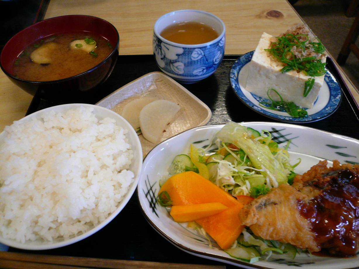 広島市西区天満町12-20 082-232-3031 今日は小さな定食屋さんへ。 昔はこういったお店でよく食べてたなぁ・・・。 って思って入りました。 メニューも丼ものも、麺系もたくさんある。 でもこういった店は定食かな? なんだかほっとしそうではないですか? 定食400円。 いやぁ、ありがたい! 魚フライがポリポリしていて香ばしいなぁ。 ってより単調なタラ系ではなく、鰺フライかな? こういったものが嬉しいな。 豆腐もついたりナスがたっぷりの味噌汁がついててご飯も炊き立て。 特別なものはないのがいいのかも。 これで400円なら満足でした。 ありがとう!って感じかな? ご馳走様でした!