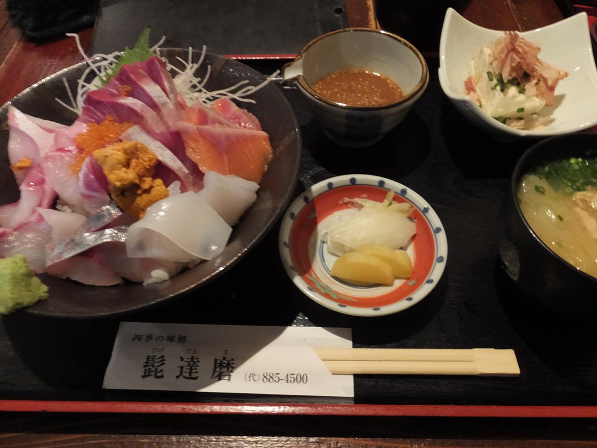 福岡市西区姪の浜4-22-10 092-885-4500 今日は姪浜近くのこちらのお店へ。 偶然前を通って気づいたのですが、こちらはランチをやっているんですね。 本店格の石丸のお店はランチをやっていなかったはず。 お店は居酒屋さんだけど、座敷もあって家族連れも多くいるし夜もそうなのかな。 魚が美味しいお店で一度本店のほうに行ったときはかなり楽しめたな。 今回も日替わりで煮魚があったのですがこの日はもう終了していた。 ってことでこちらをチョイスしました。 海鮮丼980円。 海鮮丼はなかなか豪華ですね。 この上の海鮮丼もあったのですが、最初はこちらにしました。 海鮮は6種類くらい入っていたかな。 ありがたいのですが・・・。 ご飯が炊きたてかかなり温かいのですよね。 すぐに刺身がダレてきて早く食べないといけないのは辛いな。 あとタレはゴマダレ。 甘くてなかなか面白かった。 ゴマが苦手だったので少しにしたけどそれもよかったのかな。 ここはやっぱり煮つけとかを食べてみたいな。 アラの煮魚とごはんなんてたまらないだろうし。 家族でも行きやすそうだから次はそこかな。 ご馳走様でした。