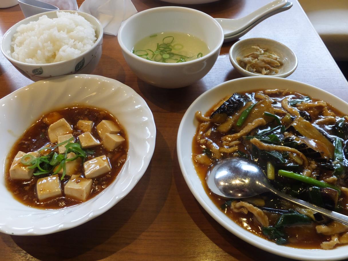福岡市西区拾六町1-91-3 092-894-3939 今日は子供の幼稚園行事があり、その帰りに立ち寄りました。 久々に来ましたが相変わらず人気店ですね。 ドンドン家族連れがやってきてあっという間に満員になりました。 こちらは平日に企画を結構やっているけど、休日はセット品が少しあるくらいなのかな。 でもそれでもこれだけの人気は素敵ですね。 さて僕ら家族はこちらをチョイスしました。 辛味茄子味噌炒め定食870円。 辛味噌炒めと麻婆豆腐という辛いものがそろった定食にスープ、ザーサイ、ごはんの組み合わせ でもこの茄子はあまり辛くない。 まろやかな中に少し辛味を感じる程度で子供でも食べれたもの。 でもたっぷりの餡で酸味も少し効いてるこの炒め物とごはんはなかなかの組み合わせ。 麻婆豆腐は和風の軽い味わい。 豆腐が柔らかくさらっとしていて食べやすい。 中華そば530円。 昔ながらというか安定のスープは少し海鮮の香りがする。 醤油も強くなく軽いスープで脂も強くない。 チャーシューは柔らかめ 麺も細麺だけどそこまで硬めに茹でられない。 もやしが固めなのもポイントなんだろうか? やわらか炒麺790円。 フワフワの麺に餡とソースという独特の組み合わせ。 餡かけっぽいのだけどソース味ってあまりないよね。 野菜がたっぷり、意外と大きな海老も2匹いた。 これは子供たちが結構喜んでいた。 やっぱりいいお店だなぁ。 特別感はないけど和風中華料理って感じで家族は喜ぶよね。 次は平日に行ってみたいな。 ご馳走様でした。