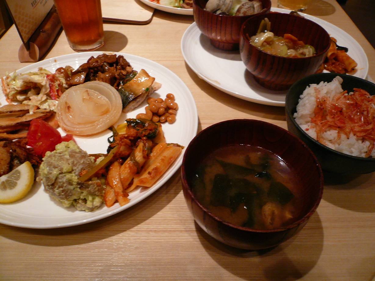大阪市浪速区難波中2-10-70なんばパークス6F 06-6636-8123 今日はなんばパークスの6階にある菜食バイキングのお店。 最近はバイキングも旨いって聞いてたけどちょっと足を運んでなかったなぁ。 たくさん食べれないだろうし、旨いって言ってもねぇ。 って気がしてね。 友達といったから行けた感じです。 土日ディナーバイキング2,079円。 名前通り野菜メインのディナーとなってました。 どれも結構しっかりした味で旨いのだけど、若干味付けしてあるやつは濃い目かな? お酒に会いそうな味が多かった。 逆ににんじんを軽くソテーしたぶんとか、菜っ葉をそのままちぎっただけのサラダとかはかなり旨かった。 玄米ご飯や、五目御飯、野菜たっぷりだし、たくさん食べれていいなぁ。 なんだかんだ言って2回お替りしてしまいました(笑)。 きっとファミリーやちょっとした友達と行くのもいいかも♪ ご馳走様でした! |