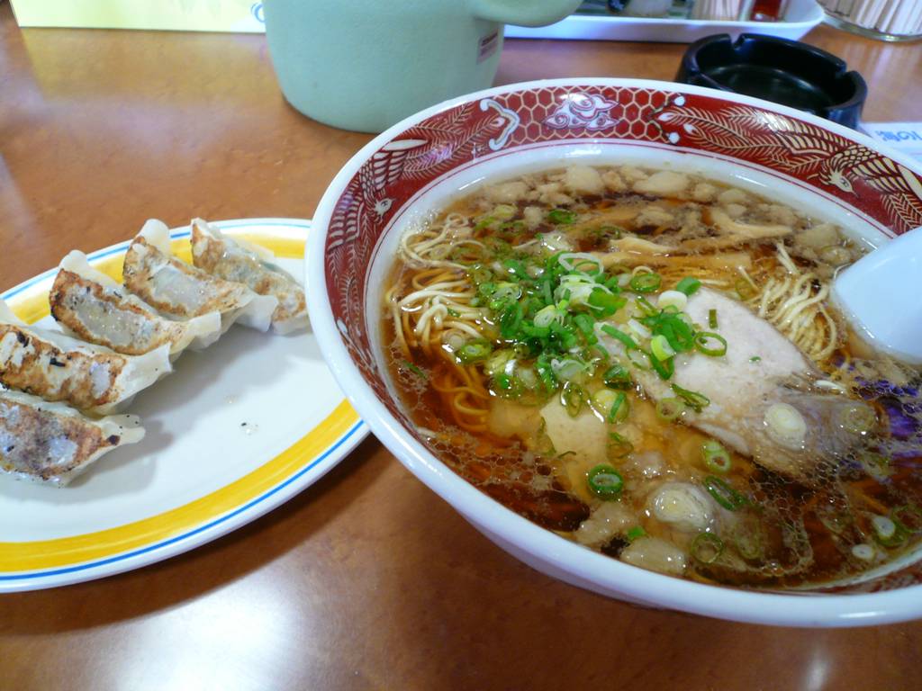 三原市本郷町南方6191-7 0848-86-6758 今日はラーメン屋さん。 今日も暑い。 つけ麺でも食べたくて入ってみました。 どんなんがあるかなぁ?って思うと意外と安い。 餃子もあるし頼んでみよう。 つけ麺はなかったけど冷やし中華があるしね。 ただ写真を見るとどうだろう・・・? ラーメン480円、餃子300円。 あれ?これって尾道ラーメン? 自分はあまり得意ではない・・・。 飲んでみたら予想通りの尾道ラーメン。 独特の香り、醤油の強さ、そしてオイリーさ・・・。 麺も少しだけ太い感じのよく尾道ラーメンにあるタイプでした。 餃子はインスタントっぽいかな? 自分の好みと違ったのが辛いなぁ。 もうちょっと気にしながら入らないとなぁ・・・。 ご馳走様でした
