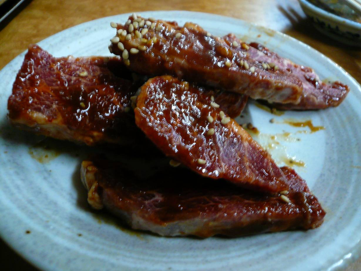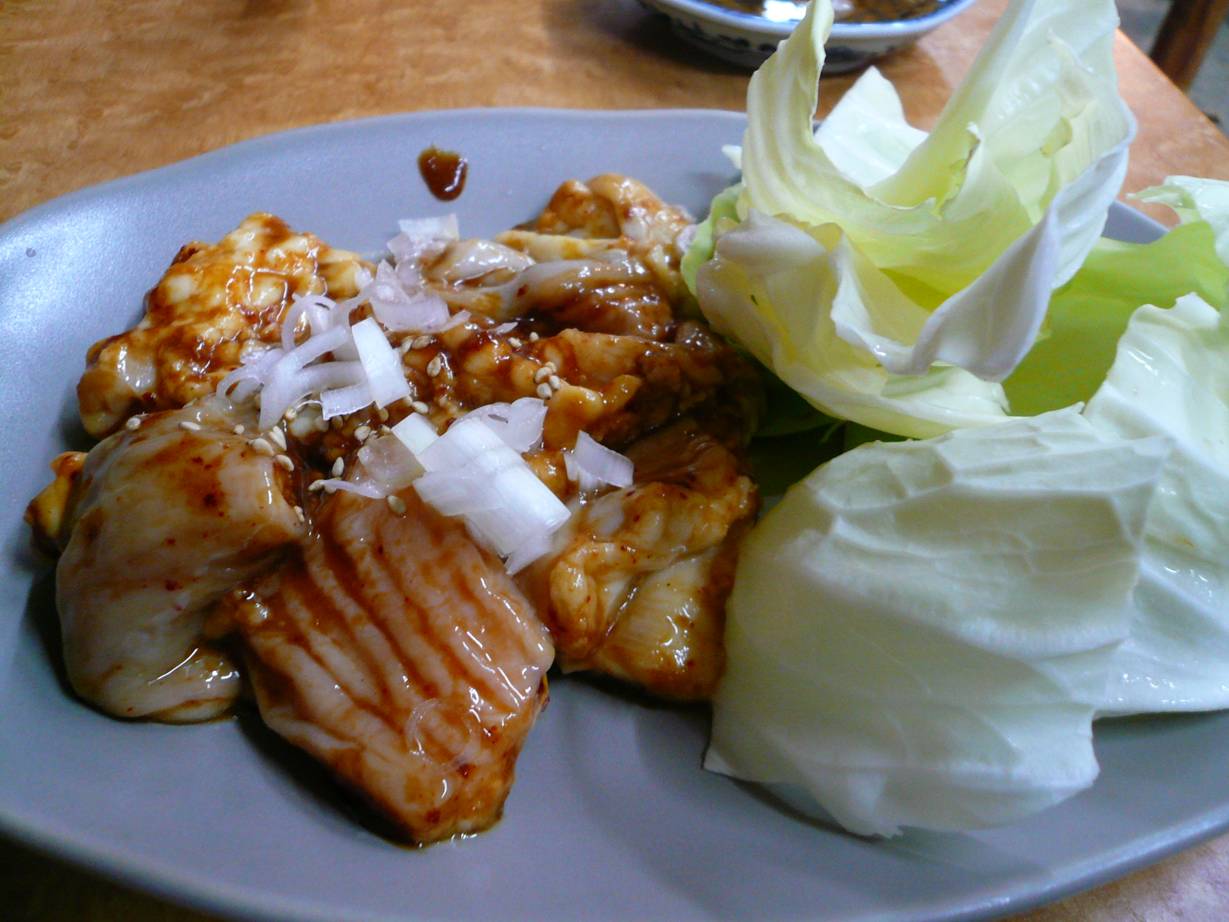 広島市西区三滝町4-12-102 082-238-0422 夜ごはんを誘ったけど、誰も近づいてくれない(涙)。 さぁ、なら冒険だ! ってより一か八かの一人焼肉だ。 我ながら思い切ったチャレンジだなぁ。 ちなみに最初にチャンジャでビールを飲み(チャンジャはなかなか旨かった)、ぼーっとテレビを見ていました。 ホルモン。 ホルモン自身は味付けされてるタイプ。 ちょっとタレがさらっとかかっててるなぁ。 そんなにいい肉ではないけど、脂が軽めで食べやすい。 つけタレがあったけどキャベツにくるみながら、にんにく唐辛子をかけて食べてたらビールも進んで旨いなぁ。 ハラミ。 これは冷凍ものだね。 タレもしっかりついてて焼くと水が流れてきて旨みがなくなる。 それをタレでフォローってやつかな? ちょっと残念な味かな、自分としては。 どの肉を頼んでもキャベツが付いてくるしいい店には違いない。 しかもビール・チャンジャ・ホルモン・ハラミ・キャベツが2皿で1,500円だった。 安いなぁ。 総合力でいい店だと思ったなぁ。 次は中華そばや冷麺で〆たり、ネギ丼も食べたいなぁ。 ご馳走様でした!