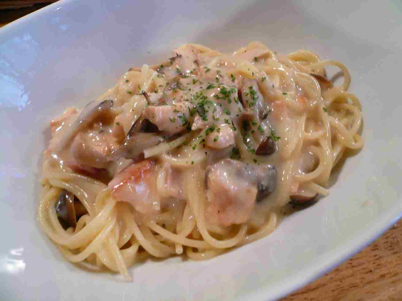 広島市西区楠木町2丁目9-11 082-573-8618 今日は、不思議と前に通ってたらやっていた居酒屋さん。 オープンの時に行ったことがあったかな? 意外と旨かったが一人食いにはちょっと恥ずかしかったお店(笑)。 雰囲気がよくお洒落なお店だが、今日からランチを始めたらしい。 パスタランチ(ドリンク付き)800円。 まずは前菜。 牛肉のタタキのサラダかな? 独特の味付けのソースをかかったタタキ。 ちょっと火は通ってすぎてるけど香りが牛の独特の香り。 この癖がいいなぁ♪ ドレッシングはよくある市販の風味もするが(ちょっと苦手)、これも含めて旨いなぁ。 野菜も含めてたっぷり食べれる! ミネストローネ。 なんかトマトの風味意外にちょっと色んな風味があり、酸味もトマトだけではないとは思う。 これはこれで面白い。 濃さとか、トマトの強さもスープとしては楽しいが、ちょっと変化球もいいなぁ。 これは腕だろうなぁ。 バケット。 フランスパンをバリバリまで焼いてる。 かりかりして旨いが、なんか御菓子みたいだ(笑)。 次のメニューまでなかなか来ないし、これだけで食べてしまった。 うまいうまい。 サーモンのクリームパスタ。 実際はクリームパスタが苦手だ。 大抵重いからだ! でもまぁ今回はさらっとしたソースタイプ。 焼いたサーモンの独特の匂いがクリームを優しくしてくれて旨い。 食べやすいかな? 麺も(パスタか!?)堅すぎず食べやすい。 ってより堅い麺があまり好きとは思わない人なのでホッとするなぁ。 けっこうこの値段でこのボリュームはありがたい。 そして気合が感じられて旨かった。 この雰囲気が続けば嬉しいなぁ♪ 次はナポリタンを食いたいなぁ。 ご馳走様でした!!
