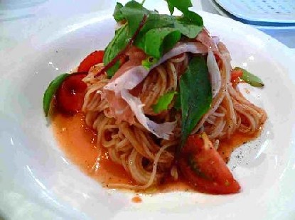 広島市中区袋町7-21 2F 082-545-4956 今日はちょっと買い物がありそのついでに食事。 軽いものが食べたいと思いパスタへ。 人と行ったのだけど、一人ではいけないお店だ(笑)。 トマトの冷製カッペリーニ。 トマトは意外と酸味と濃厚さのあるトマトだ。 冷静パスタってのはトマトがフルーツトマト系の甘いタイプが多いのに、酸味がはっきりしていて濃い濃いトマトだ。 普通こうなると冷やすと食べにくいはずなのに食べやすいのは腕でしょうか? 舐めてかかって食べてたが(失礼)、満足度は高い。 塩もわりとはっきり効いていて旨かった。 えびとルッコラのタリオリーネ。 イメージはやはりきしめんか?もちもちしてクリームが強くないから食べやすい。 クリームパスタは意外と旨い。 自分はあまり好きなでは無いはずなのにもちもちしたパスタとクリームの絡まり具合がなかなかだ。 でも、自分はトマトのパスタかな? ここはテーブルのインテリアが素敵だし、デートに使えそう。 こりゃいいや! ご馳走様でした。