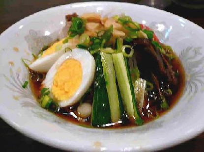 広島市西区横川3-2-20 082-291-7798 今日は少し暑い。 そして少しばて気味。 そんなときは冷麺でしゃっきりしたい気分なのでやってきました。 しかしメニューを見ると・・・。 「餃子ラーメン」 えっ、餃子?まぁありかな? 「納豆ラーメン」 えっ、納豆?まぁなしかな(笑)。 冷麺750円。 丼にたっぷりの黒いスープ。 そしてトマト・細かく切ったチャーシュー、メンマ、ゆで卵、キューリ。 スープを一口飲むと、酸味にむせる。 ちょっとこれは飲むスープではなく、タレですね。 そうそう、自分は冷麺といえば韓国風の飲めるスープで食べる物を言う。 しかし広島では辛いつけ麺も「冷麺」、こういった一般的な「冷やし中華」も冷麺って言うなぁ。 ややこしい。 ってことでこれはスープの多い冷やし中華って感じだ。 チャーシューは脂が強いけど柔らかい感じだなぁ。 あと全て無難にまとめてあって食べやすいが、イメージとは違った。 次はやはり納豆ラーメンだな。 ご馳走様でした。
