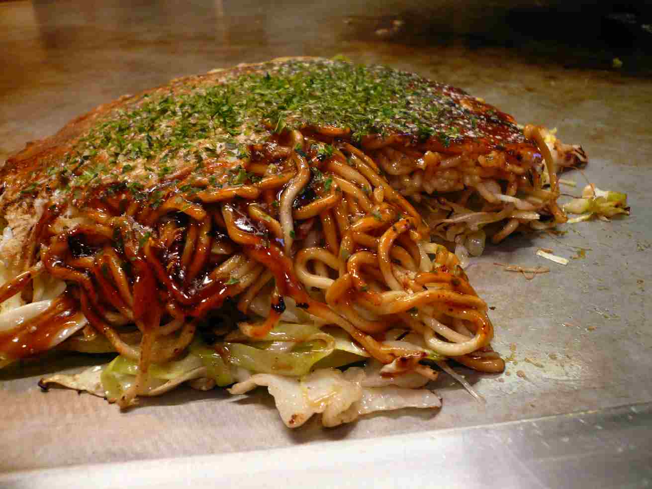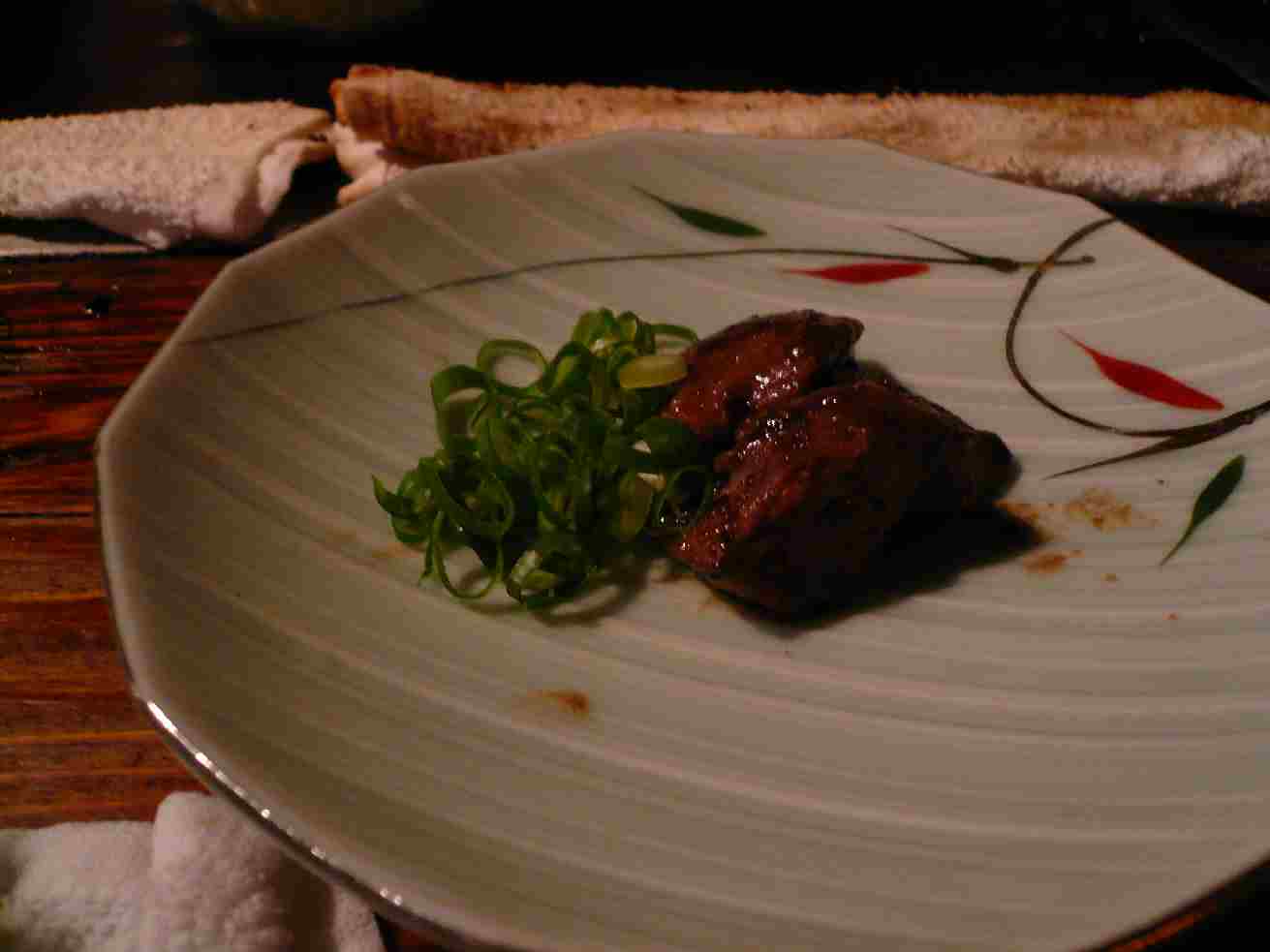 福山市宝町2-19 084-925-8989 もう一軒行きたいなぁ、とうろうろしてると(もう閉まってる時間だったのか目的店は閉まってた)前回行ったときにも旨かったのだけど、記憶がなくなってたから記憶があるうちに書いておきます(笑)。 しかしここは居酒屋さんらしいお酒もたくさんあるし、安いなぁ♪ でもジャンルは鉄板焼き屋さんかな? メニューを待ってる間にもらったレバー。 柔らかくトロっとして旨い。 これはビールが呑みたくなる味だ。 なんだろう、バカあまこってりってやつだろうか? こんな味が何故か元気を生み出してくれる。 鉄板焼き屋さんの醍醐味か? ホルモン焼きそば。 鰹節もたっぷりかかった焼きそば。 ホルモンだけでなく野菜もたっぷりだ! ホルモンは脂がたっぷりだから甘い。 その脂でそばをパリッと焼く感じかな? ちょっともそもそ感は気になるけどこれを焼酎でグビグビ流すと気持ちいい! これも鉄板焼き屋さんのいいところかな? ここはやっぱり勢い系なんだけど、一人でも全然いい感じ。 なんだかんだ上手く距離を作ってくれるからいいなぁ。 また行くぞ! ご馳走様でした!! こちらも画像を明るくしてもらいました。 ・・・見える?