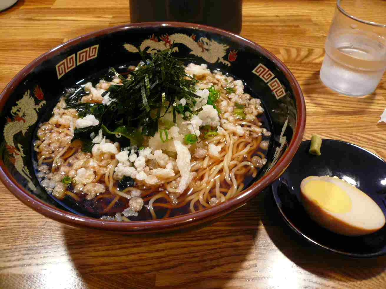 福山市伊勢ケ丘六丁目26 084-918-9614 今日は暑い。 非常に暑い。だから涼しいものが食べたくなって冷やしラーメンを食べに参りました。 初めてのお店なのにノーマルを食べろよ・・・。 でもぶっかけラーメンって気にならない? ぶっかけラーメン580円。 なんだこれは!? まずそれが第一印象。 薄く脂の浮いてないスープ。 チャーシューとか肉気の無い具。 そして大量の大根おろしと天カス。 別盛りの卵とワサビ。ワサビ!? 食べてみたらスープは実にあっさり。ちょっと蕎麦だしのようだ。 甘味が薄くすっと飲める。 旨味とかはそんなに強く感じないけど、暑いのでこんなタイプも面白い。 麺はプチっとして不思議な食感。 蕎麦の食感に近い。でも蕎麦の香りは無い(当然か)。 ってより蕎麦を延長にしたラーメンって言う感じか。 ちょっと最後は飽きてしまいワサビを混ぜたが大きな影響は無かった。 でも非常に面白かった。 これなら普通の味も食べてみたいぞ! ご馳走様でした!