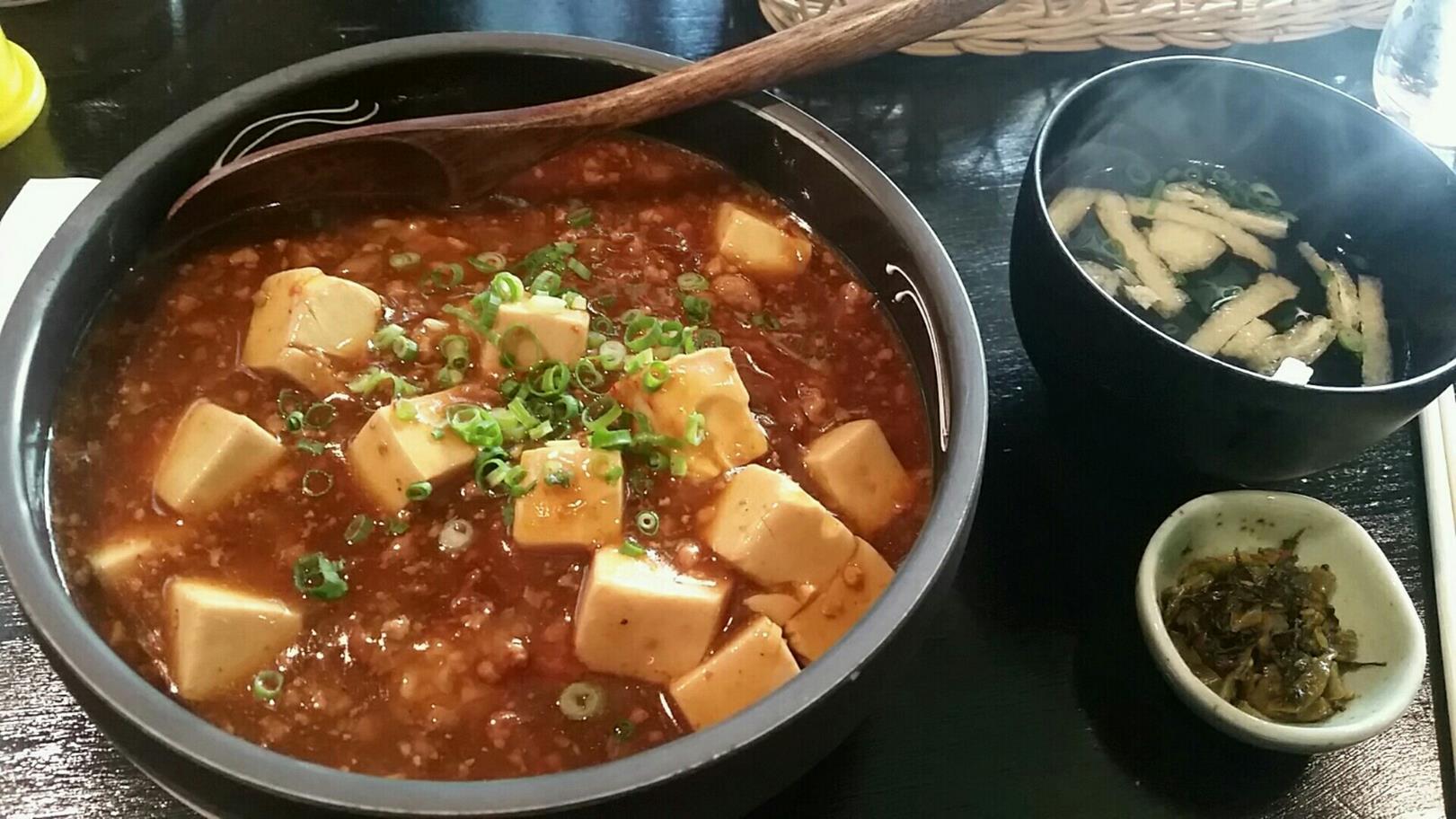 福岡市博多区奈良屋町8-8 092-271-5137 今日はこちらのお店へランチを取りに。 これまでランチをやっていなかったのですが、気づけばランチも始められていました。 どうやらこちらはビッグダディというか。 子だくさんの大将が営まれているようだ。 この日は子供さんが手伝っていたなぁ(この時期はまだ冬休みだった)。 ただいつまでランチをやられるかは不明だから行かれるなら早めにしたほうがいいかも。 さてこの日はこんなものをチョイスしました。 麻婆豆腐丼600円。 麻婆豆腐丼とお吸い物、高菜漬けの組み合わせ。 とろみの強い麻婆豆腐は唐辛子の辛みがメインで山椒とかは感じない。 純和風の麻婆豆腐で食べやすいなぁ。 ごはんが少し柔らかいのでそこは苦手だけど、ごはんのボリュームもあってうれしいな。 お吸い物は無難に、高菜漬けは少し酸味もあって好きだったなぁ。 面白いお店ですね。 夜はセット料金もあって面白いらしいです。 一度は行かないとな。 我が家も双子がいて大変だし話が合うかな? ご馳走様でした。