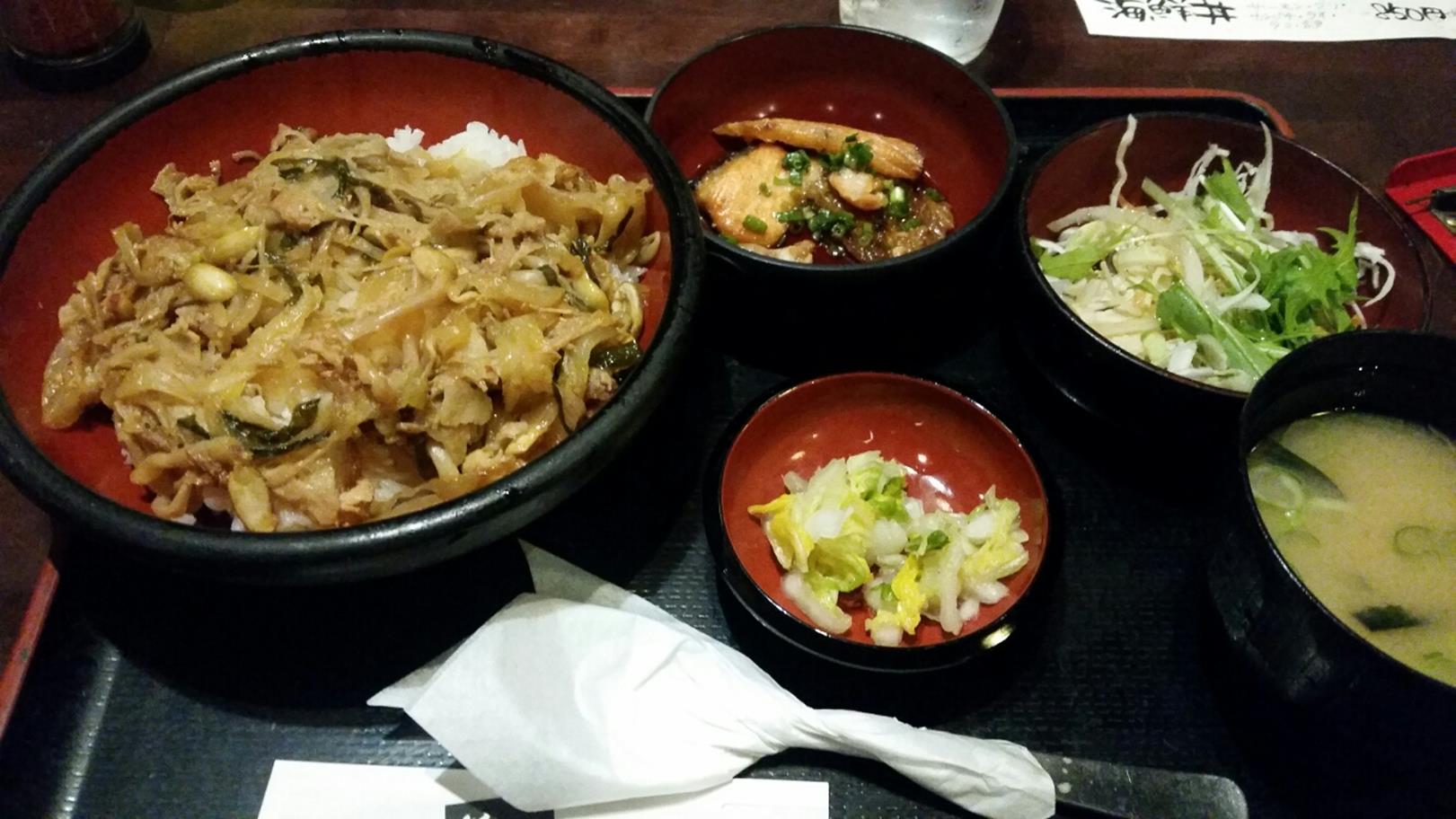福岡市中央区天神3-2-22 092-716-2255 さて今日はこちらのお店でランチを。 居酒屋さんとして天神周辺に何軒かある有名店。 でもランチをやっているとは知らなかった。 偶然前を通ってみるとランチが表示されていて吸い込まれるように入ってしまった。 お店は13時半くらいだったのにサラリーマンでいっぱい。 これは人気なんだろうなぁ、って思えました。 曜日によってはカレーバイキングみたいなのもあるようだけど、この日はなく。 そして日替わりも売り切れとなっていた。 ってことでレギュラーメニューをチョイス。 豚キムチ丼648円。 たっぷりの豚キムチと小鉢が三つ、そして味噌汁という食い合わせ。 豚キムチ丼はご飯が団子状になるくらい柔らかくそこは少し・・・。 キムチは辛みが軽く酸味がしっかりしていて好きだっただけにかなり残念だな。 小鉢は鮭のあらを南蛮漬けになっているのが面白いね。 漬物や野菜もしっかり用意してくれていて納得のランチとなりました。 なんとなく人気なのもわかるお店ですよね。 次はもう少し早い時間に行きたいな。 そしてやっぱり人気の日替わりを食べたいな。 ご馳走様でした。