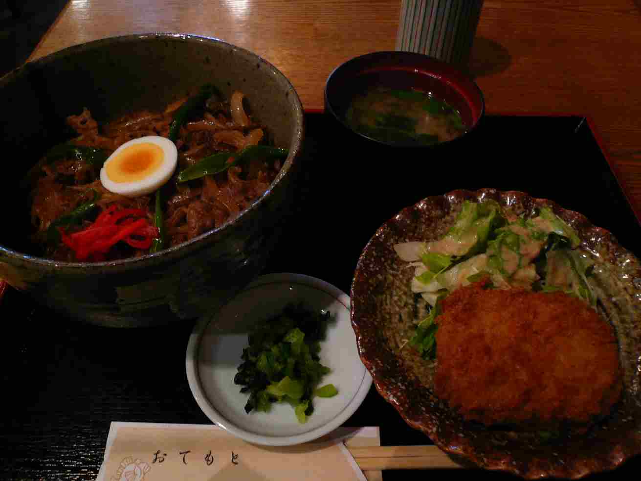 広島市中区本川町2丁目2-17 082-233-7410 昼定食700円。 ランチは牛丼・牛肉コロッケ・漬物・味噌汁だ。 牛丼は汁気の無い、すき焼きな感じかな? 糸コン・タマネギ・ネギと煮込んだタイプ。甘味が少なく食べやすい。 紅しょうがが汁を赤く染めたのは笑えたなぁ。 いや、不味くないのだけどね。 コロッケは意外と普通だけど肉気が少なくて芋が旨かった。 多分普通のコロッケだけどウスターソースに馴染んで良かった。 普通な感じなランチでインパクトは少なかったが普通に旨かった。 あと、何かあればいいのだけどなぁ。 あと、魚料理のお店の感じだったから肩透かし感がありました。 ううむううむ。 ご馳走様でした。