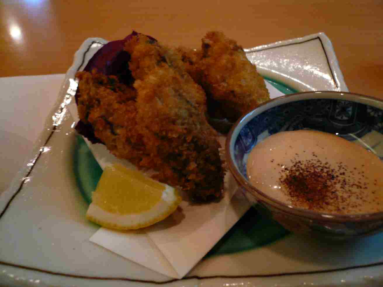 広島市西区三篠町2-18-17 082-237-0105 さて、おでんを堪能し、まだ少し呑み足りない気持ちを持ってると、「西区に住んでるんですがまだ呑みますか?」って誘っていただく。 ありがとうチョイ悪夫婦様(笑)。 って事で自分が好きなお店へ。 ってより、今年になっていってなかったので行きたいなぁ、なんて思って寄りました。申し訳ないですね、出汁に使って(笑)。 スジ煮込み。 まずは焼酎を頼んで1品食べたいなぁ、って軽く思って頼みました。出てきた時にすっとネギのさわやかな香りがする。 おっ!?って思って食べて驚く。 出汁がしっかり効いてるのに、味噌の味もバランス良く整ってる。 そして全く甘味が無いくらい甘味が押さえられてる。 酒に合うし、食べればさらに食欲が増す感じ。 でも結構量があるのに飽きずに食べれるのは、いいネギのおかげかな?さわやかなネギの香りと青い香りが最高に合うではないか? やられた! しかし写真は黒いなぁ・・・。 失敗した(苦笑)。 そして、ここで汁が残る。これを舐めながら酒に進むか、これでご飯を食べるか悩む。相当悩む・・・。 すると来たのはカキフライ。 今年最後のカキフライかな?ってより秋に最初にカキフライを食べたのはここだった気がする。 食べると牡蠣のスープは少ない気がするが、それでも牡蠣スープは濃厚ですなぁ。旨い。 ってより牡蠣の香りはとんでもなく強い。 こんなカキフライが食べたかった(もちろん牡蠣スープがたっぷりなら尚嬉しいが)。 ソースは・・・マヨネーズベースかな?少しつけると衣がチープ感を出してうはは、って気分になる。 6個入って900円くらいだった気がするがかなり満足だった。 悩んだ挙句ご飯を頼むと、漬物を付けて出してくれた。 これで味噌さっきのスジ煮込みの汁をかけて食べる。 うほほ、これこれ!予想通り、味噌がご飯によってさらに甦る。 旨い旨い。 漬物はあっさりして旨い。普通に旨い浅漬けだ。 でも自分はこの漬物に醤油は必要ない気がした・・・。 でもトータルとして大変満足したなぁ。 でも焼酎がちょっと変な風味になってた。 すぐに日本酒に変えちゃったのだけど、ちょっと気になるなぁ。 あと、ここはいつも自分は和食に日本酒・焼酎で行くのだが、 ここのお店の醍醐味は多分、和風洋食なんだろう。 メニューはそんなのが多いからなぁ。 ワインもあったし。 いつかはコースで食べてみたいなぁ。 ご馳走様でした!